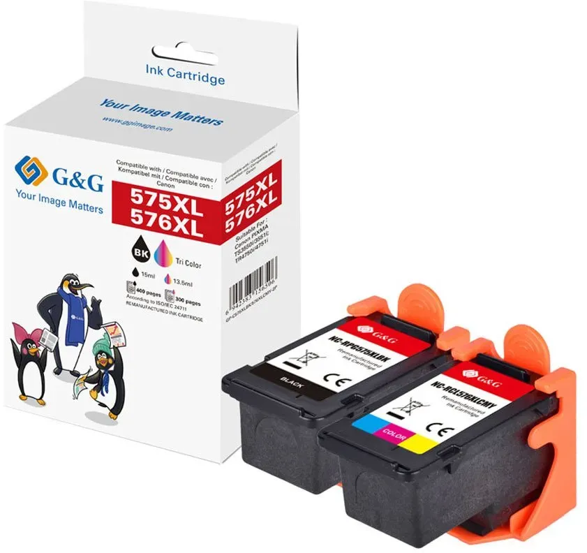 Verfügbarkeit: Lieferzeit 1-2 Werktage - Kategorie: Druckerpatronen - G&G - GTIN:6942383156506 - Die erstklassige XL-Alternative von G&G als Ersatz für Canon PG-575XL und CL-576XL Der Tintenfüllstand des Druckers wird unterstützt. Wiederaufbereitete Druckerpatrone Bei dieser Druckkopf-Patrone wurde der Schwamm und Filter ausgetauscht. Toner und Tinte von G&G:Toner und Druckerpatronen in bester Qualität zum fairen Preis.Ninestar produziert nach der ISO9001-Qualitätsnorm und der ISO14001 Umweltnorm.Alle Materialien entsprechen der REACH-Verordnung. Ninestar mit seiner Marke G&G ist nach ROHS zertifiziert. Nach dem STMC Verfahren wird die Qualität geprüftDer Kaiserpinguin als Markensymbol von G&GDer Kaiserpinguin als Markenzeichen. Das Image des Kaiser-Pinguins soll die Marke mit den Eigenschaften Mut, Leidenschaft, Eleganz, Umweltfreundlichkeit und Einigkeit füllen. Zudem möchte Ninestar mit dem Pinguin-Markenzeichen auf den Klimawandel hinweisen und seine Mitarbeiter und Kunden ermutigen umweltfreudlich zu handeln. - 49,99 Euro bei toner-dumping.de - gefunden von billiger.de Ein weiteres Original Canon Photo Value Pack, das eine Schwarz- und Farbpatrone sowie Fotopapier zu einem guten Preis beinhaltet. ![]() ![]() Original Canon PG-575XL / CL-576XL Photo Value Pack (5437C006) 4-farbig + 50 ...