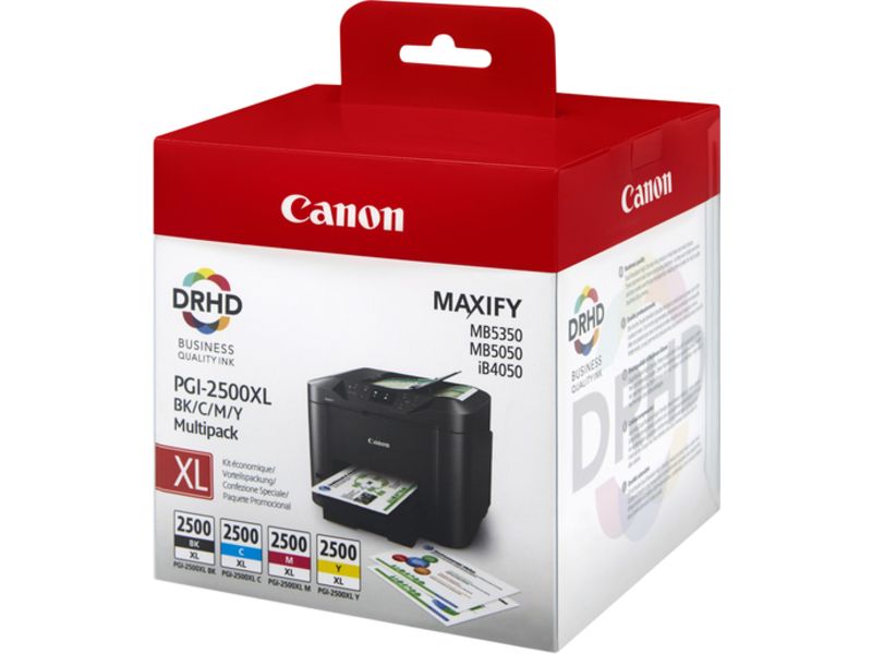 Kategorie: Druckerpatronen - KMP - GTIN:4011324156553 - KMP Tintenpatrone Canon PGI-2500XL BK/C/M/Y MULTI. Original Hersteller Nummer: 9254B004. Original oder Kompatibel: Kompatibel. Wiederaufgearbeitet: Ja. Seitenleistung: 1 x 2500, 1 x 1755, 1 x 1295, 1 x 1520. Kompatibilitat: Canon Maxify iB4050/iB4150, MB5050/MB5150/MB5155/MB5350/MB5450/MB5455. Tintenvolumen: 1x 71 ml. 3x 19 ml. Referenznummer der Patrone: C103V. Gewicht: 435 g. Abmessungen: 110/140 x 170 x 57 mm (H x B x T). Farbe: Schwarz, Cyan, Magenta, Gelb. Menge: Packung mit 4 Stuck. - 65,80 Euro bei Viking - gefunden von billiger.de Ein Original Canon Multipack mit allen vier Farben, das eine hohe Kapazität bietet und für beste Druckergebnisse sorgt. ![]() printabout .de Canon PGI-2500XL BK/C/M/Y - 4-farbig - Druckerpatrone - Hohe Kapazität - Multipack