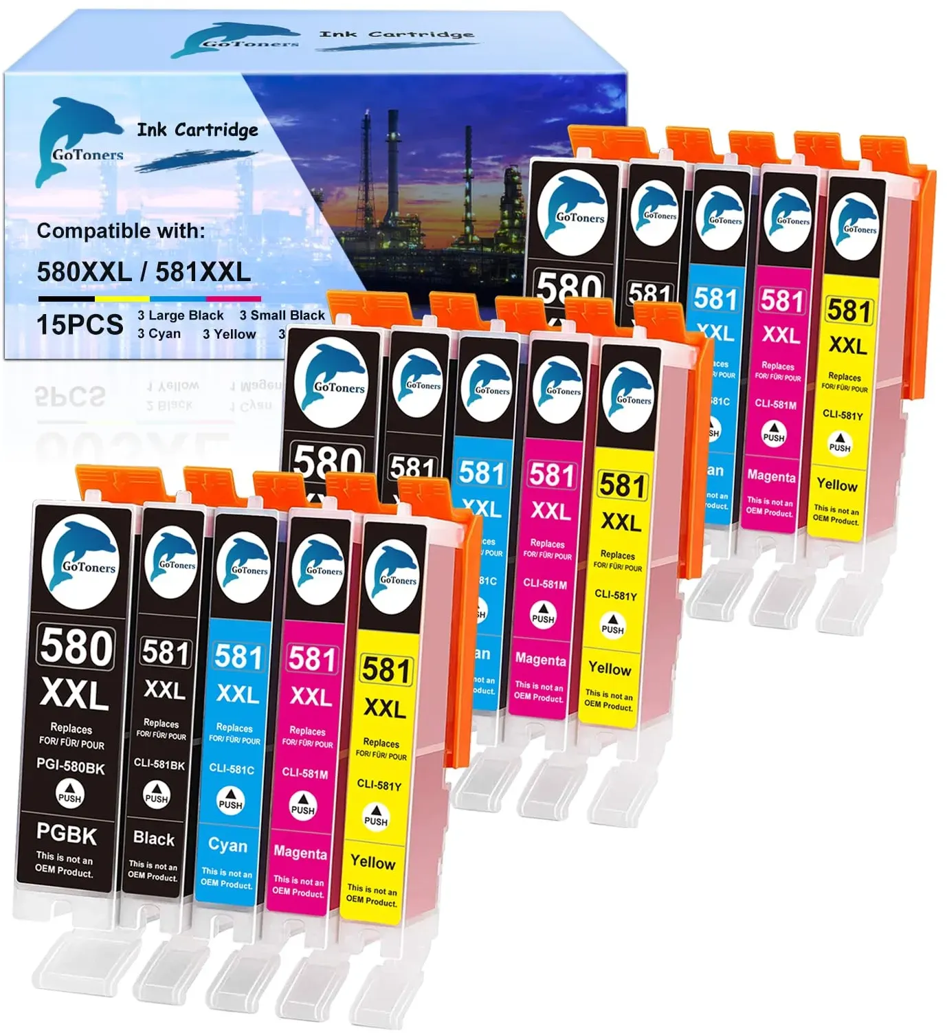 Kategorie: Druckerpatronen - Printing Pleasure - GTIN:5056259506553 - 6 XXL Premium PGI-580/CLI-581 XXL Druckerpatronen für Canon Pixma TR7550 TS6151 TS6251 TS705 TS8152 TS8251 TS8252 TS9550 TS9551C | PGI-580PGBK XXL CLI-581BK XXL CLI-581C XXL CLI-581M XXL CLI-581Y XXL - 22,14 Euro bei Amazon Marketplace Automotive - gefunden von billiger.de Dieses GoToners 15er-Pack bietet eine sehr große Menge an kompatiblen Patronen für intensive Nutzung. ![]() ![]() GoToners XXL Patronen Kompatibel für Canon 580 581 Druckerpatronen PGI-580 CLI-581 für Canon Pixma TR8550 TS705 TS6350 TS6350a TS705a TS6351 TS6250 TS6150 TS9550 TS6300 TS6251 TR7550 (15er-Pack)