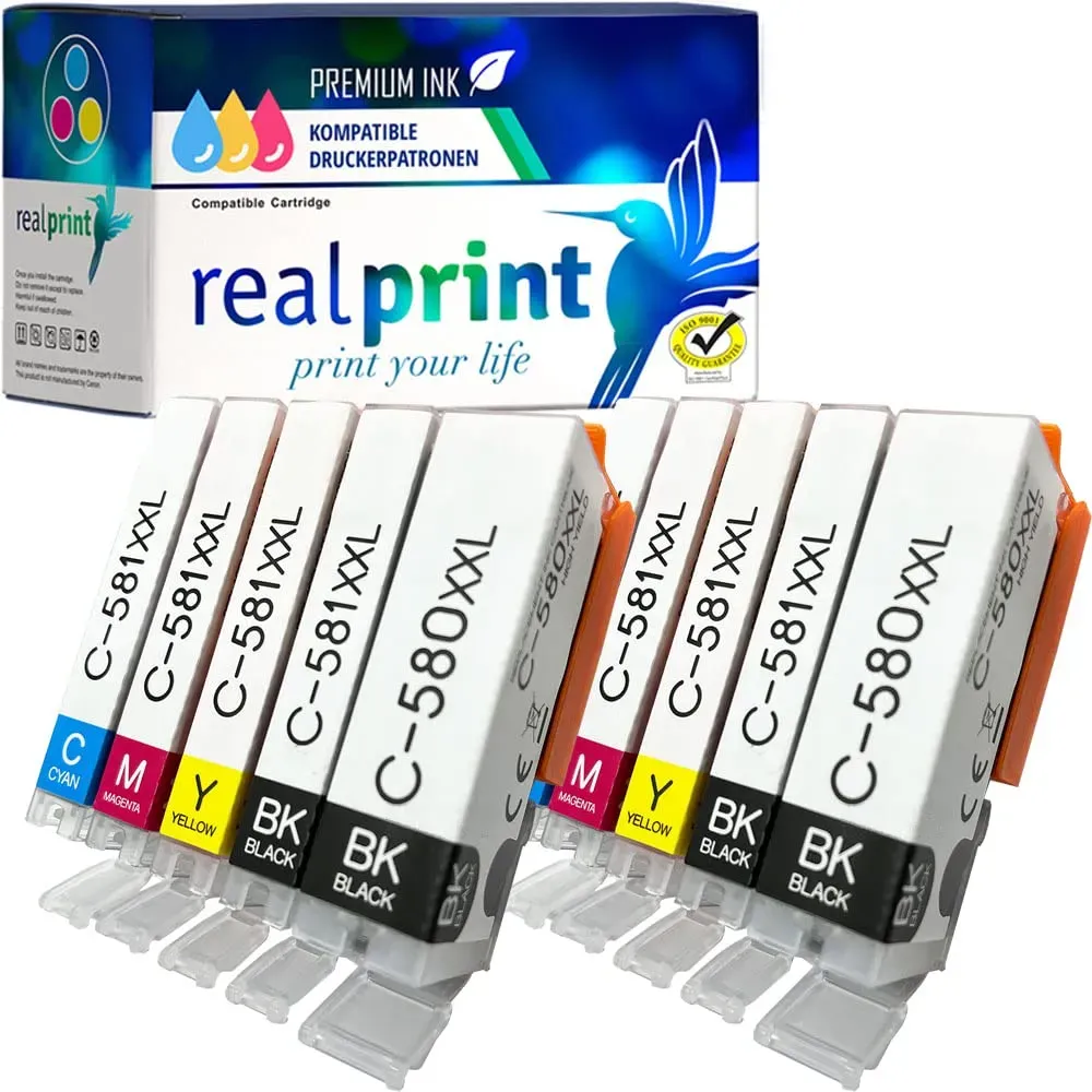 Kategorie: Druckerpatronen - realprint - GTIN:4250562132787 - Hochwertige Tinte der Marke realprint für hervorragende Druckqualität. Das Spar-Set besteht aus 2 Sets kompatibler Druckerpatronen der Marke realprint als Ersatz für PGI580 /CLI581. 2x 5 Druckerpatronen als Ersatz für PGI580, CLI580BK, CLI580 Cyan, CLI580 Magenta, CLI580 Yellow Füllmenge in der XXL-Ausführung (ca. 25 ml bzw. 11,7 ml)! Passend für folgende Modelle: Canon Pixma TS705 TS6350 TR7550 TR8550 TS6150 TS6151 TS8150 TS8151 TS8250 TS8251 TS8350 TS8351 (siehe weiterführend bei Produktdetails) - 17,99 Euro bei Amazon Marketplace Automotive - gefunden von billiger.de Dieses 6er-Set von Printing Pleasure bietet eine gute Menge an Premium-Patronen für eine längere Nutzung. ![]() ![]() Printing Pleasure 6 XXL Premium PGI-580/CLI-581 XXL Druckerpatronen für Canon Pixma TR7550 TS6151 TS6251 TS705 TS8152 TS8251 TS8252 TS9550 TS9551C | PGI-580PGBK XXL CLI-581BK XXL CLI-581C XXL CLI-581M XXL CLI-581Y XXL
