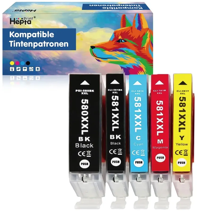 Preisbereich & KaufempfehlungOriginalpatronen Ein 5er-XXL-Set (PGI-580XXL + CLI-581XXL) kostet als Original oft über 100?€[11]. Einzelne XXL-Patronen liegen bei ca. 15-25?€ pro Stück, je nach Farbe und Händler[6]. Kompatible Patronen Kompatible XXL-Sets (5er oder 12er) sind bereits ab ca. 17-25?€ für das gesamte Set erhältlich[3][5][14]. Einzelne kompatible XXL-Patronen kosten oft unter 10?€[5]. Multipacks (z.B. 10er-Set) sind noch günstiger pro Stück[2]. Preisvergleichstipps Nutzen Sie Meta-Preisvergleiche wie Idealo, um aktuelle Angebote zu finden und direkt zu den Shops zu gelangen. Beispiel-Links für die Suche: Konkrete Kaufhilfe