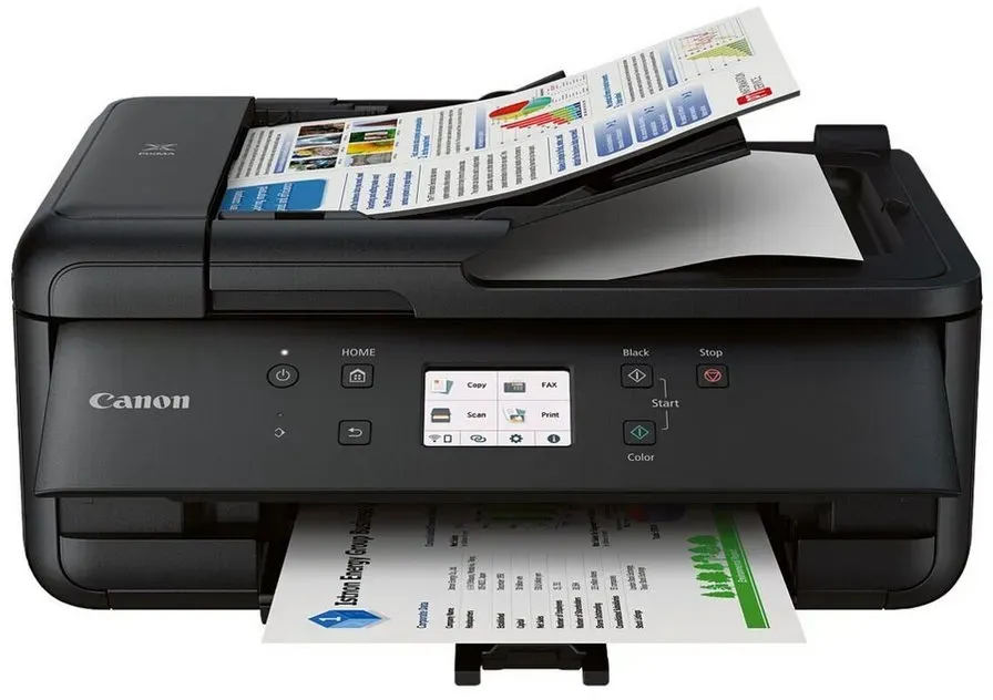 Canon - EAN: 4549292233407 - Homeoffice-Multifunktionssystem mit 20-Blatt-ADF / A4, Drucken, Kopieren, Scannen, Faxen / WLAN, Mobil- und Cloud-Konnektivität, 7,5 cm Farb-Touchscreen - bei notebooksbilliger.de - aus Yadore Produktdaten Ein umfassendes Angebot mit vielen Funktionen wie ADF, Cloud Link und AirPrint zu einem fairen Preis. ![]() ![]() Canon PIXMA TR7650 Multifunktionsdrucker DIN A4 - Farbtintenstrahldrucker schwarz 4 in 1 (Scanner, Kopierer, kabelloser Drucker, Fax, Cloud Link, ADF, WLAN, LCD, 4800 x 1200 DPI, AirPrint & Mopria)