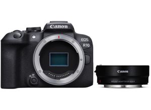 Kategorie: Systemkameras - Canon - GTIN:4549292189773 - Die Canon EOS R10 ist so vielseitig, dass sie praktisch alles mitmacht. Sie ist der ideale Reisebegleiter. Ein ideales Werkzeug zur Erstellung von Inhalten. Ihr Mittel zur kreativen Selbstdarstellung. Im Set inkl. Canon RF-S 18-45mm f4,5-6,3 IS STM Objektiv. - 949,00 Euro bei foto-erhardt.de - gefunden von billiger.de Dieses Angebot für 949 Euro ist empfehlenswert, da es das Kameragehäuse der Canon EOS R10 zusammen mit einem EF-EOS R Adapter bietet, um auch EF-Objektive nutzen zu können. ![]() Canon EOS R10 Gehäuse + EF-EOS R Adapter