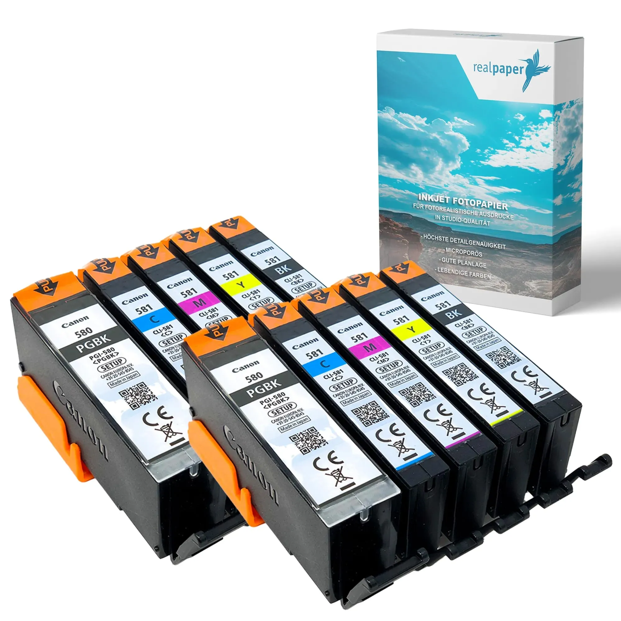 Zustand: Neu - Tintenpatronen für Drucker Tintenpatronen für Tintenstrahldrucker - Peach - PI100-437 - EAN: 7640460544060 - HIGHLIGHT: Umweltschonend durch Mehrfachverwendung = CO2 Reduktion QUALITÄT: Hochwertige Drucke durch Swiss Engineering EINSPARUNG: Mit Peach Druckerzubehör sparen Sie bis zu 60% gegenüber Original Produkten ERSETZT: Canon PGI-580XXL, CLI-581XXL, Peach ID: PI100-437, Enthält: 10 Druckerpatronen (2xBK, PBK, 2xC, 2xM, 2xY, blau) FÜLLMENGE: 2x23, 8x12 ml - bei Amazon.de Dieses Bundle bietet eine gute Menge an Original-Setup-Patronen zusammen mit Fotopapier, ideal für den Start. ![]() ![]() realpaper Bundle 10 Originale Canon Setup Druckerpatronen PGI-580/ CLI-581 passend für die Drucker Canon Pixma TS705 TS6350 TS8350 TR8550 TS6150 TS8150 TS9150 TS8250 [+25 Blatt Fotopapier der Marke