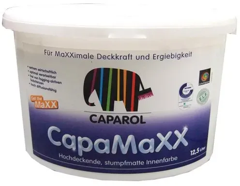 Kategorie: Farben & Lacke - Caparol - Caparol CapaMaXX weiß 12,5 Liter - 73,64 Euro bei Amazon Marketplace Home Improvement - gefunden von billiger.de Dieses Angebot ist mit 79,90 Euro für 12,5 Liter eine solide Wahl für gröÃ?ere Flächen. ![]() ![]() Caparol CapaMaXX - 12,5L weiß, eBay hochdeckende Wandfarbe, Dispersionsfarbe