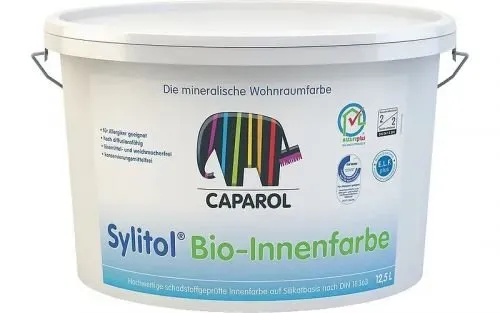 Kategorie: Farben & Lacke - CAPAROL Farben - GTIN:4002381125132 - Caparol Sylitol ökologische Mineralfarbe für Streichen von Wänden und Decken jeder Wohnumgebung. Zum Beispiel: Wohn- und Schlafzimmer; Klassenzimmer. - 74,99 Euro bei Amazon Marketplace Home Improvement - gefunden von billiger.de ![]() ![]() Caparol Sylitol Bio-Innenfarbe Größe 12,5 LTR, Farbe altweiß (ca. RAL 9010)