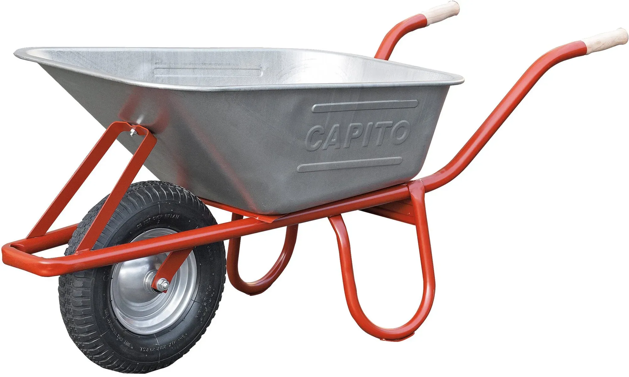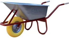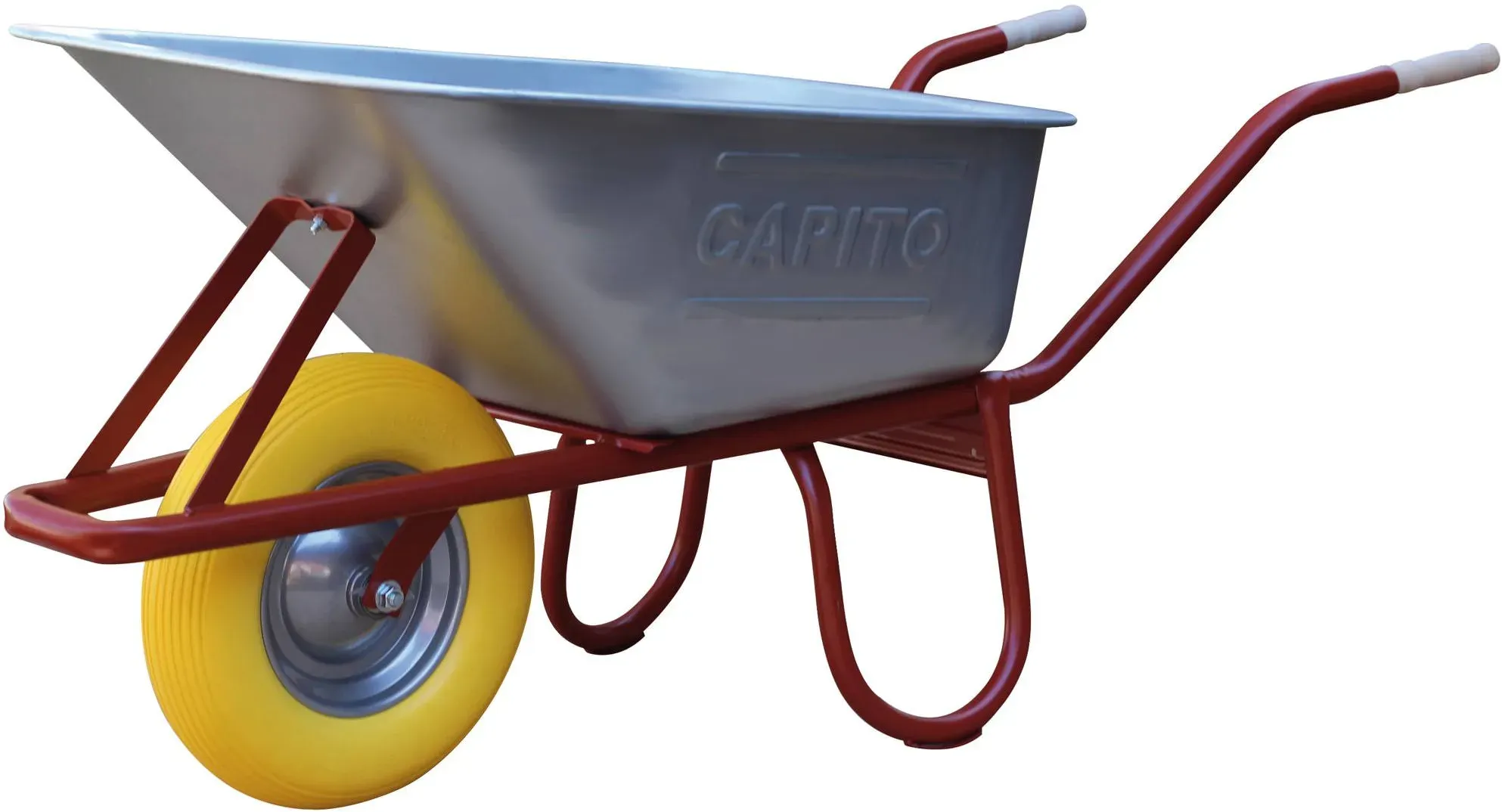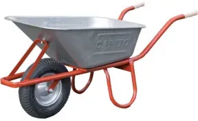 Kategorie: Gartenwerkzeuge - CAPITO - GTIN:4027972116191 - Profi-Tiefmuldenkarre Eurocar Eigenschaften: Muldentragender Stahlrohrrahmen mit angebogenem Kippbügel Stahlrohr 34 mm , Wandstärke 1,5 mm Gegeneinander angeschweißte Füße mit Fußverstärkung Verzinkte, schmale Tiefmulde, Blechstärke 1,00 mm, mit profiliertem Wulstrand Vordere Muldenabstützung Handfreundliche Holzgriffe 400 x 100 mm Demontiert geliefert Hinweis: Kratzer und Dellen an der Schubkarre sind handelsüblich und sind von einer Reklamation ausgeschlossen. - 179,90 Euro bei Contorion.de - gefunden von billiger.de Diese Schubkarre mit vollgeschäumtem Rad ist eine robuste und wartungsarme Option. ![]() ![]() CAPITO Schubkarre Eurocar 100 vollgesch. Rad 400/100mm