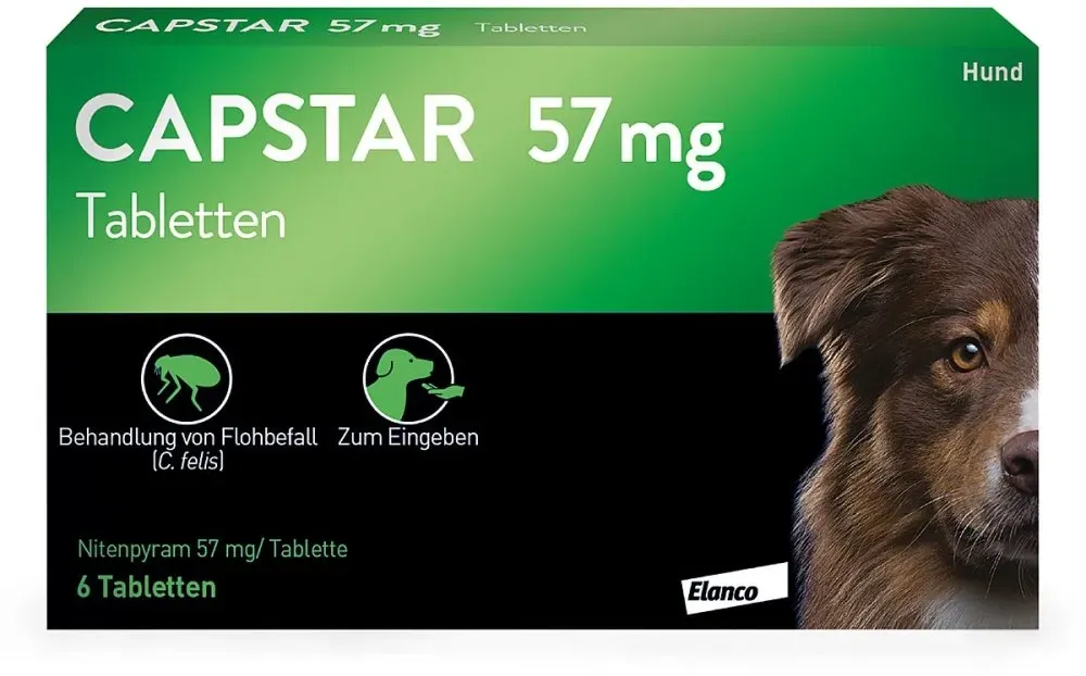 20 Händlerangebote bei billiger.de - Kategorie: Tiergesundheit - Elanco - Anwendungsgebiet von Capstar 57 mg Tabletten für große Hunde Capstar Tabletten für große Hunde bis 57 kg die schnelle Hilfe bei Flohbefall Flöhe gehören zu den häufigsten und hartnäckigsten Parasiten bei Hunden und Katzen. Viele Tiere werden mindestens einmal in Ihrem Leben von diesen lästigen Insekten befallen meistens durch Kontakt mit anderen befallenen Tieren. Das Tückische: Flöhe vermehren sich bei optimalen Bedingungen besonders rasch und so kann nach kurzer Zeit eine richtige Flohplage entstehen. Ist ein Floh auf dem Tier entdeckt, ist das meistens nur die Spitze des Eisberges, denn nach der Blutmahlzeit beginnen Flöhe mit der Eiablage. Die Eier und daraus schlüpfenden Larven befinden sich dann in der Umgebung des Tieres: im Körbchen, unter Möbeln oder im Teppich.Capstar Tabletten für große Hunde mit dem Wirkstoff Nitenpyram wirken direkt und schnell gegen erwachsene Flöhe bei Hunden. Der rasche Wirkeintritt beginnt bereits 15 bis 30 Minuten nach Gabe und sorgt dafür, dass die auf dem Hund befindlichen Flöhe abgetötet werden. Nach 6 Stunden sind nahezu alle Flöhe auf dem Hund abgetötet. Dadurch kann verhindert werden, dass erwachsene Flöhe Blut saugen und Eier legen können, die sich dann in der weiteren Umgebung verteilen. Dabei ist Capstar in der Anwendung besonders einfach: Nur eine Tablette reicht zur Behandlung eines akuten Flohbefalls eines großen Hundes von 11 kg bis 57 kg aus.Capstar ist ... Ein weiteres sehr preiswertes Angebot für Capstar 57 mg für große Hunde. ![]() ![]() Elanco Capstar 57 mg Tabletten für große Hunde