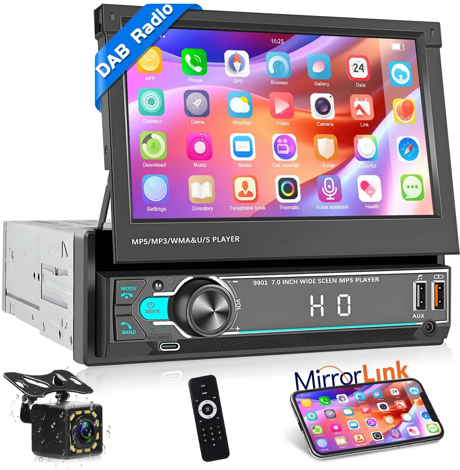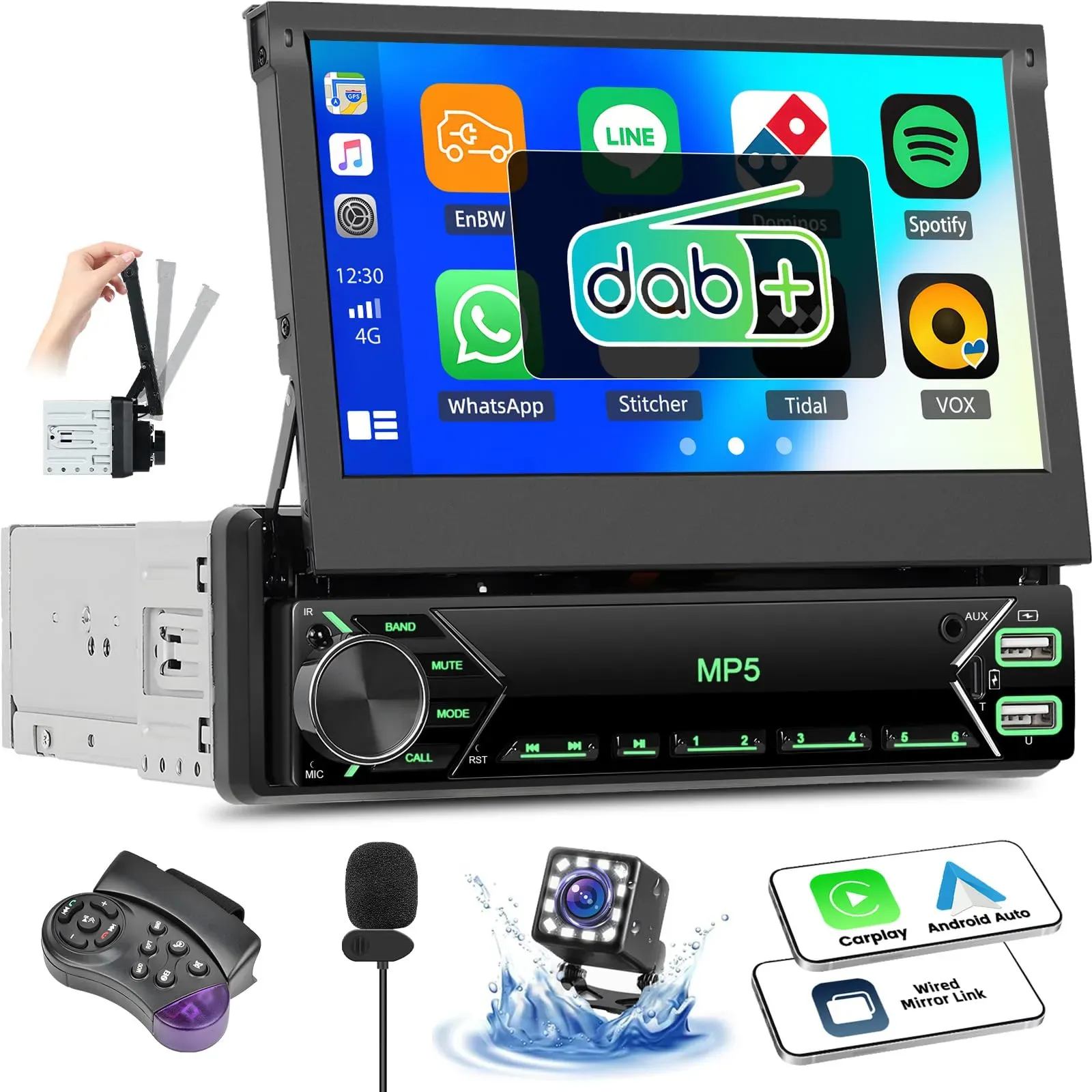 lieferbar-in 8-10 Werktagen bei dirHikity 1DIN 7-Zoll HD MP5 Player, mit DAB, Mirror Link, Kamera Autoradio (Digitalradio (DAB), einziehbare Leinwand)