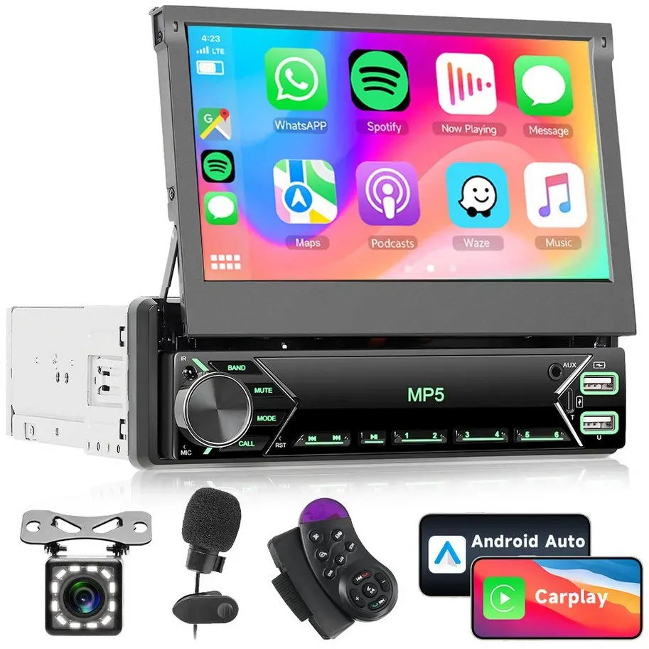 Kategorie: Car-Multimedia-Systeme - motorsi - Kompatibel mit Apple Carplay/Android Auto - Autoradio unterstützt Carplay und Android Auto, verbindet sich mit dem Mobiltelefon, verwendet Sprachbefehle, greift auf mobile Anwendungen, Adressbuch, E-Mail, Benachrichtigungen, Kartennavigation, Musik, Video und andere Informationen zu. Einziehbarer Klappbildschirm - Der Autoplayer befestigt ein einziehbares 7-Zoll-HD-Bildschirmpanel an der gewöhnlichen Einzeldin. Es kann in zwei Modi geändert werden. Wenn Sie einen großen Bildschirm benötigen, genießen Sie die Vision des großen Bildschirms (Sie müssen sie manuell umschalten). Bluetooth und FM Radio - Unterstützt Bluetooth A2DP-Freisprechanrufe, Musikwiedergabe und automatisches Laden des Telefonbuchs. Hören Sie Wettervorhersagen, Echtzeit-Straßenbedingungen, verschiedene Kanalsendungen durch automatische Suche nach FM-Radio, bis zu 18 Sendern. Rückfahrkamera/SWC/Mirror Link - Die Rückfahrkamera schaltet beim Rückwärtsfahren automatisch das Rückfahrbild um. Unterstützen Sie das Lenkradlernen, steuern Sie das Autoradio während der Fahrt. Unterstützt die Mobiltelefonprojektion des Android / IOS-Systems im Autoradio. Weitere Funktionen - Unterstützt SD-Karte, USB-Wiedergabe, AUX-Musikwiedergabe, Sprachumschaltung, dualer USB2.0-Adaptereingang, RCA-Audio- und Videowiedergabe, Zeiteinstellung, Schnittstellenthemen, Hintergrundbildumschaltung usw. Verbessern Sie Ihr Fahrerlebnis mit unserem All-in-One-DAB-Autoradio, jetzt mit ... Ein solides Blaupunkt Autoradio mit DAB+ und Bluetooth zu einem fairen Preis. ![]()