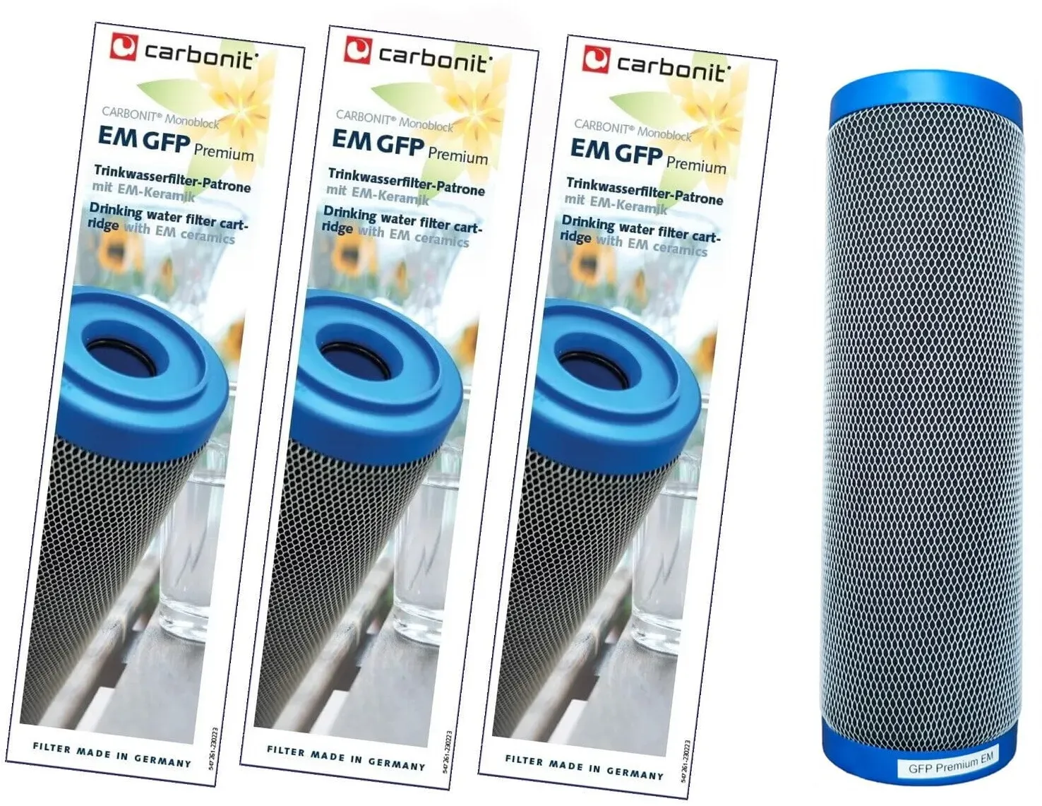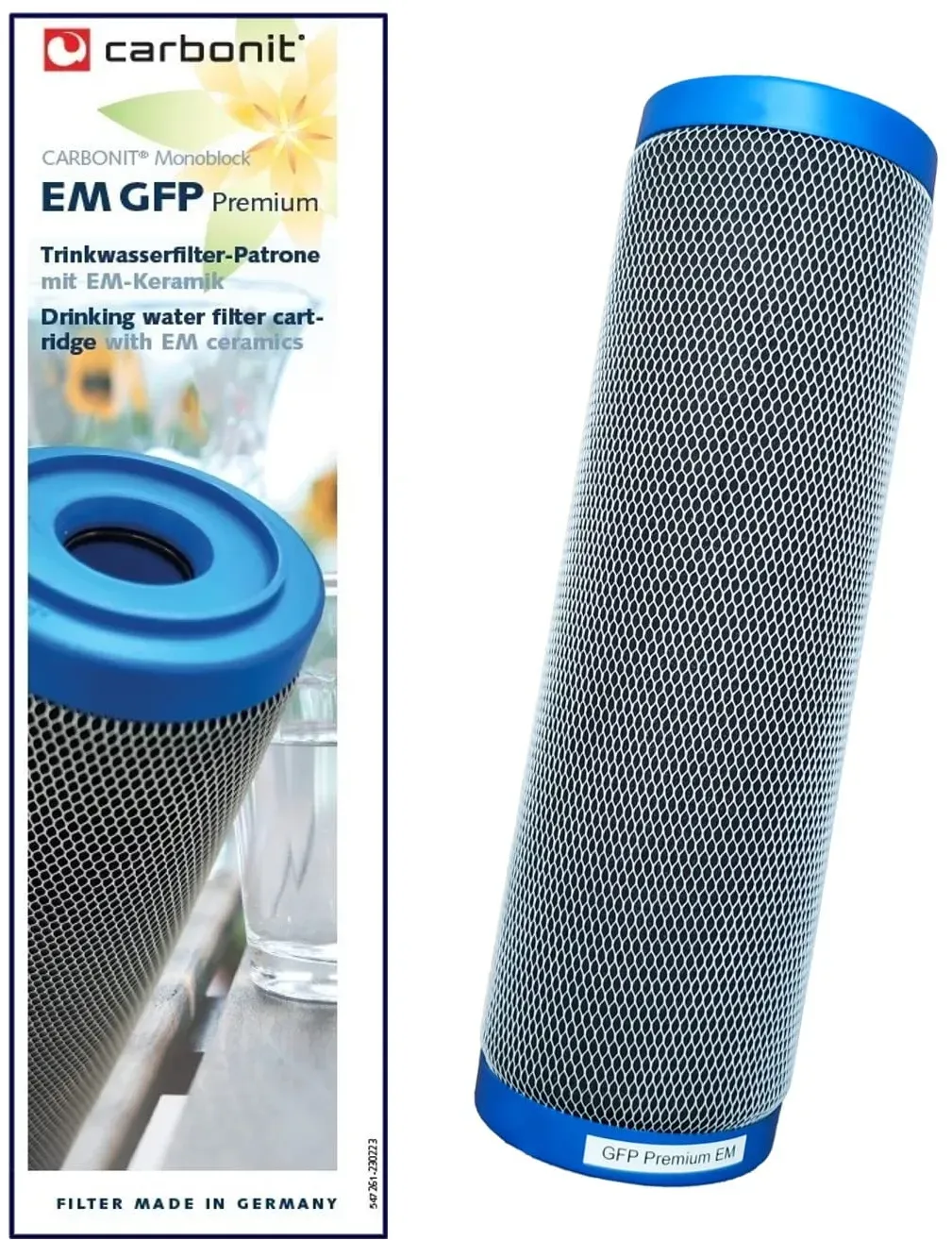 Kategorie: Wasserfilter - Carbonit - GTIN:4250188804310 - Neuheit: GFP Premium mit EM-Keramik made in Germany von Prime Inventions powered by Carbonit Deutschland Top Filterleistung kombiniert mit EM-Keramik für ein unvergleichliches Geschmackserlebnis! Effektive Filterung von Chlor, DDT, Pestiziden, Medikamentenrückständen, Schwermetallen, Coli-Bakterien und anderen Schadstoffen. Qualitätsprodukt: Wirksamkeit überprüft und Produktion in Deutschland überwacht Kapazität 13.000 Liter, Wechsel nach 6 Monaten empfohlen - 71,90 Euro bei Amazon Marketplace Home - gefunden von billiger.de ![]() ![]() GFP Premium - EM Wasserfilterpatrone, eBay Ersatzfilter, Wasserfilter, Filter