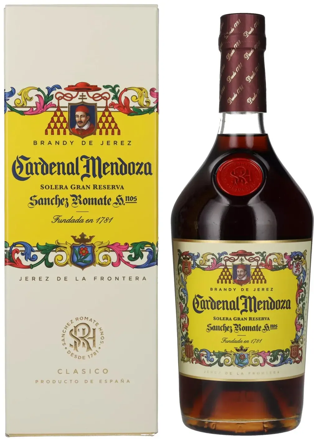 Verfügbarkeit: 1-3 Werktage - 69,99 €/l - Kategorie: Weinbrände - Cardenal Mendoza - GTIN:8410161721010 - Cardenal Mendoza Carta Real Brandy 40% Vol. 0,7l in Geschenkbox - 48,99 Euro bei yewel.de - the finest - gefunden von billiger.de Dieses 3er-Pack des Cardenal Mendoza Clásico Solera Gran Reserva ist ideal für Sammler oder als Vorrat für Liebhaber. ![]() ![]() Cardenal Mendoza Cla?sico Solera Gran Reserva, Brandy de Jerez (3x0,7l) 40% vol-In edler Geschenkverpackung -15 Jahre im Solera-System gereift, außergewöhnliche Geschmackstiefe