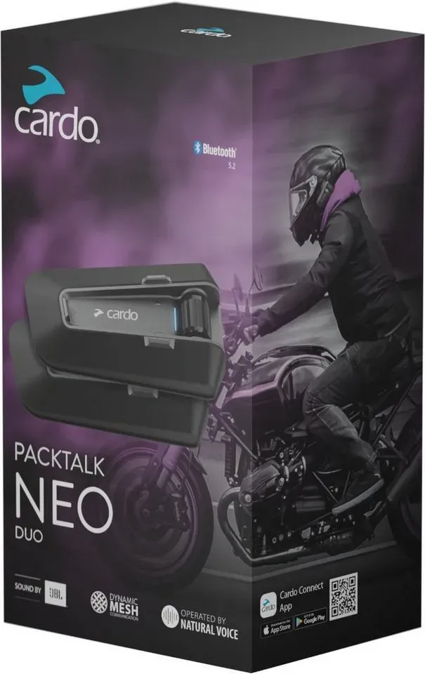 Zustand: Gebraucht - Gegensprechanlagen - Cardo CARDO - Packtalk Neo PTN00101 - EAN: 0828831843906 - WASSERDICHT. Egal, was Sie darauf werfen, Ihr wasserdichtes PACKTALK NEO hält es aus und hält Sie in Verbindung. Regen, Sonnenschein, Schlamm, Staub oder Schnee. TON VON JBL. Neue und leistungsstarke 40-mm-High-Definition-Lautsprecher, die von JBL-Experten bis zur Perfektion entwickelt wurden, mit einem verbesserten Musikprozessor und drei neu gestalteten Audioprofilen. NATÜRLICHE STIMME. Unsere verbesserte Natural Voice Operation Engine befreit Sie davon, jemals wieder eine Taste drücken zu müssen. Sagen Sie einfach Hey Cardo und sagen Sie ihm, was Sie wollen, Ihr PACKTALK NEO erledigt den rest. DYNAMISCHE MESH-KOMMUNIKATION GEN 2. Wir haben die weltbeste Gegensprechanlage für Motorräder genommen und sie verbessert. Für bis zu 15 Fahrer bei einer Reichweite von bis zu 1,6 km/1mi. Einfach Gruppierung. Blitzschnell, einfach und Einfach. Müheloses Gruppieren wie nie zuvor. - 6 Händler im amazon.de Marketplace Das günstigste Duo-Set, ideal für Paare oder Gruppen, die gemeinsam unterwegs sind und sparen möchten. ![]() ![]() Cardo Packtalk Neo Duo