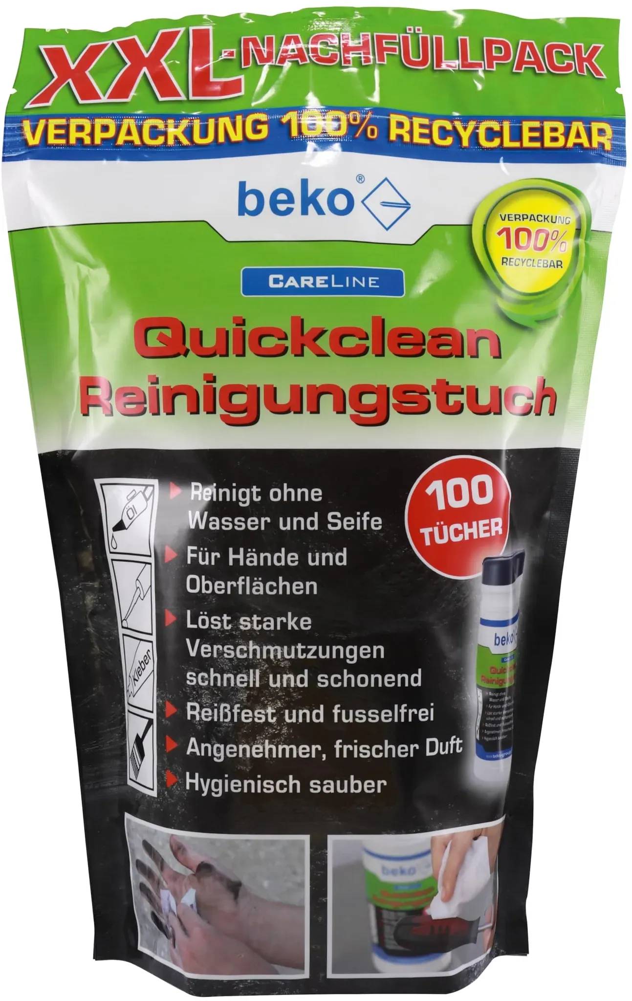 Zustand: Neu - 0,15 € / stück - Reinigungstücher Wiederverwendbare Reinigungstücher - beko - 299 3 101 - EAN: 4036421322687 - Flächen-, Werkzeug- und Handreinigung mit einem universellen Tuch, porentiefe Reinigung ohne Wasser und Seife. Entfernt Verunreinigungen durch Fett, Teer, Öl, Bitumen, Klebstoff, Dichtstoff, Harz, Wachs, Tinte usw. Mobil einsetzbar von Mechanikern, Kundendienstmonteuren, Landwirten, LKW- und Busfahrern usw. Bei Montage- und Außenarbeiten, in Werkstätten sowie bei Wartung, Transport und Service. - Verkäufer: beschlagswelt im amazon.de Marketplace ![]() ![]() Beko XXL-Nachfüllpack - CareLine Reingungstuch