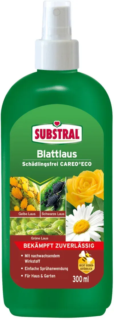 Kategorie: Pflegemittel & Schädlingsbekämpfung - Substral - GTIN:4062700866559 - Anwendungsfertiges Sprühmittel mit nachwachsendem Wirkstoff Bekämpft zuverlässig saugende Schädlinge in allen Stadien - Ei abtötende Wirkung Zur Anwendung an Orchideen & Zimmerpflanzen Wirksam gegen Blattläuse, Schildläuse, Spinnmilben und Wollläuse Nicht bienengefährlich, schont Nützlinge Da es sich um ein Pumpspray handelt, besteht nicht die Gefahr des Verkühlens empfindlicher Pflanzen Zul.Nr:. 024213-76 | Zugelassene Handelsbezeichnung: Blattlaus Schädlingsfrei Careo Eco| Pflanzenschutzmittel vorsichtig verwenden. Vor Verwendung stets Etikett und Produktinformationen lesen. Anwendung durch nichtberufliche Anwender zulässig - 8,92 Euro bei Amazon Marketplace Lawn & Garden - gefunden von billiger.de Ein sehr preiswertes und gezieltes Mittel zur Bekämpfung von Blattläusen auf Pflanzen. ![]() ![]() Substral Blattlaus Schädlingsfrei Careo ECO - 300 ml