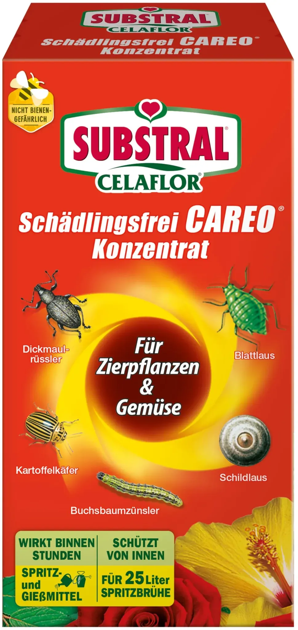 Careo META PreisvergleichMit dem Meta-Preisvergleich suchen Sie gleichzeitig bei den großen Preisvergleich Portalen!Jetzt live Suche nach careo starten! Careo KaufberatungBei 'Careo' handelt es sich vor allem um die Produktlinie Celaflor Schädlingsfrei Careo, ein vollsystemisches Pflanzenschutzmittel gegen saugende und beißende Schädlinge wie Blattläuse, Weiße Fliege, Kartoffelkäfer, Buchsbaumzünsler und weitere Insekten an Gemüse und Zierpflanzen[2][3][4]. Wichtig zu beachten ist: