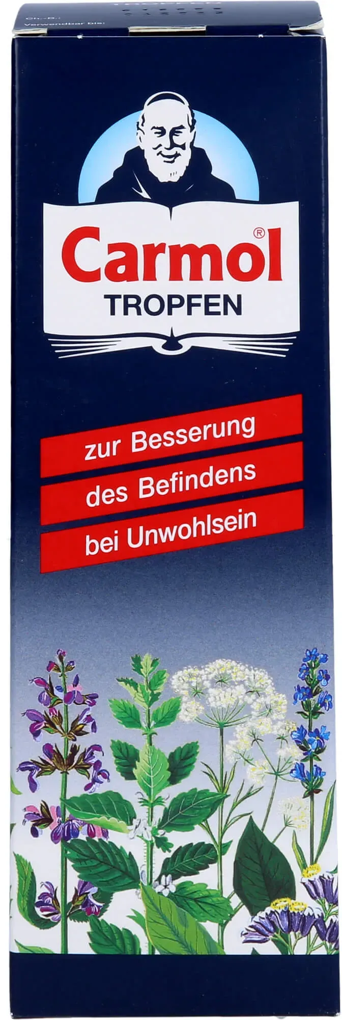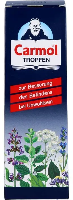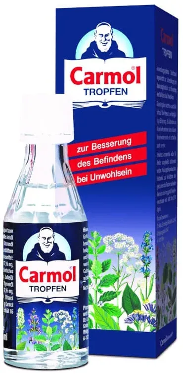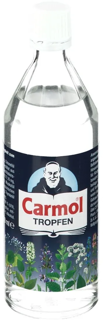 Carmol - EAN: 4150173872105 - In Carmol Tropfen sind hochkonzentrierte Heilkräfte aus den ölen von 10 Heilpflanzen enthalten. Die Rezeptur dieses Karmelitergeistes wird seit 1611 unverändert nach überlieferungen der Karmelitermönche hergestellt und ist heute eine bewährte traditionelle Tropfenmedizin. Carmol Tropfen unterstützt bei vielen Beschwerden im Alltag und darf daher in keiner Hausapotheke fehlen.Anwendungsgebiete:Traditionell angewendet zur Unterstützung der Verdauungsfunktion, zur Besserung des Befindens bei Unwohlsein. Unwohl' kann man sich bei vielen Beschwerden im Alltag fühlen, so z.B. bei Erkältungen, Einschlafstörungen, Magenbeschwerden, Nervosität, Gereiztheit, nervösen Beschwerden in den Wechseljahren, Reisebeschwerden, Unruhen und Wetterfühligkeit.Art der Anwendung:10-20 Tropfen auf einem Stück Zucker, in Wasser oder im Tee, bis zu 5-mal täglich einnehmen.Hinweis:Enthält 65 % Vol. Alkohol. - bei shop-apotheke.com - aus Yadore Produktdaten ![]() Carmol Tropfen 160 ml