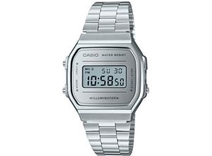 Armbanduhren Mode Uhren Schmuck - - 1974 setzte das japanische Unternehmen CASIO einen Meilenstein in der Geschichte der Uhren: durch die Entwicklung einer der ersten digitalen Armbanduhren der Welt. Nach wie vor fertigt CASIO Uhren, die in Funktion und Design bestechen und darüber hinaus Trends nicht nur vorauseilen, sondern maßgeblich setzen. Die CASIO VINTAGE Kollektion transportiert das stylische und charakteristische Uhren-Design der 70er und 80er Jahre gekonnt in die Gegenwart., Produktdetails: Modellbezeichnung: A168WEM-7EF, Funktionen: Antrieb: Quarz, Anzeige: digital, Wasserdicht: spritzwassergeschützt, Datumsfunktionen: automatischer Kalender, Stoppfunktionen: 1/100 Sekunde, Zwischenzeit, Alarmfunktionen: Tagesalarm, Zusatzfunktionen: 12/24-Std.-Anzeige, Beleuchtung, Farbe: Gehäusefarbe: silberfarben, Armbandfarbe: grau-silberfarben, Material: Gehäusematerial: Resin, Armbandmaterial: Edelstahl, Optik/Stil: Stil: Basic, Gehäuse: Glas: Acrylglas, Armband: Verschluss Armband: Schiebeverschluss, Maßangaben: Gehäuselänge: 39 mm, Gehäusebreite: 36 mm, Stromversorgung: Anzahl Batterien: 1 Stk., Batterie-/Akku-Technologie: 3-V-CR-2016, Details: Besondere Merkmale: Quarzuhr, Armbanduhr,Damenuhr, Herrenuhr, Digitaluhr, Edelstahlarmband, Technische Daten: WEEE-Reg.-Nr. DE: 87.608.106 - Google-Altersgruppe: Erwachsene - Versandkostenfrei: false - Google-Geschlecht: weiblich - Lieferzeit: 3 Tage - Produktbewertung: High - Sofort verfügbar: true - Uhrenanzeige: Digital - Für ... Dieses Angebot von OTTO ist mit 54.90 Euro etwas teurer, aber immer noch eine gute Option für Kunden, die Wert auf den Service von OTTO legen. ![]() ![]() CASIO Quarzuhr Casio A168WEM-7EF Vintage Iconic Unisex Uhr 36mm Casio A168WEM-7EF Vintage Iconic Unisex Uhr 36mm