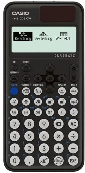 30 Händlerangebote bei billiger.de - Kategorie: Taschenrechner - Casio - Der Rechner entspricht den ab dem Prüfungsjahr 2030 geltenden Richtlinien der Länder für den Einsatz digitaler Hilfsmittel in der Abiturprüfung im Fach Mathematik Der FX-810DE CW bietet alle grundlegenden Funktionen eines wissenschaftlichen Schulrechners. Ein optimiertes Tastaturlayout und die deutsche Menüführung machen den Rechner zu einem einfach zu bedienenden Werkzeug im Mathematikunterricht Die Erstellung von QR-Codes zur Ergebnisvisuali'sierung auf dem Smartphone oder Tablet ist möglich Grafiken, Diagramme und Tabellen lassen sich so über den CASIO-Webservice darstellen - GTIN:4549526616983 Ein weiteres sehr preiswertes Angebot für den Taschenrechner allein. ![]() ![]() CASIO FX-810DE CW Wissenschaftlicher Taschenrechner schwarz