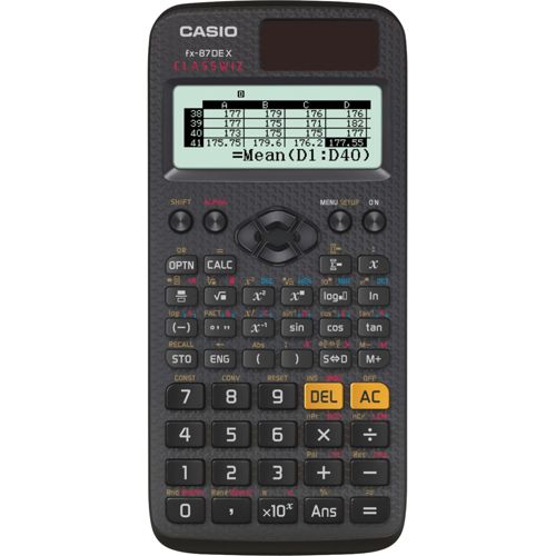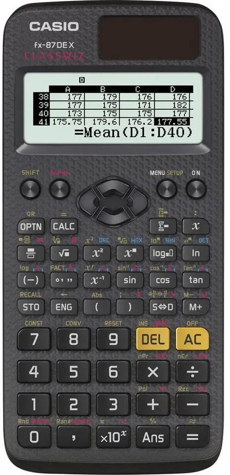 4 Händlerangebote bei billiger.de - Kategorie: Taschenrechner - Casio - Wissenschaftlicher Rechner mit 593 Funktionen und hocauflösenden Display. Innovative Tabellenkalkulation, die es dem Anwender erstmalig auf einem technisch-wissenschaftlichen Taschenrechner ermöglicht, die grundlegenden Berechnungen einer Tabellenkalkulation zu nutzen. Desweiteren ist eine Ergebnis-Visualisierung auf dem Smartphone oder Tablet, die durch die verfügbaren QR-Codes realisierbar wird. Ideal geeignet für den Schuleinsatz in Baden-Württemberg und an Gymnasien in Bayern. - GTIN:4549526611858 ![]() ![]() Casio FX-87DEX - Technisch wissenschaftlicher eBay Rechner Schwarz Display (Stellen...