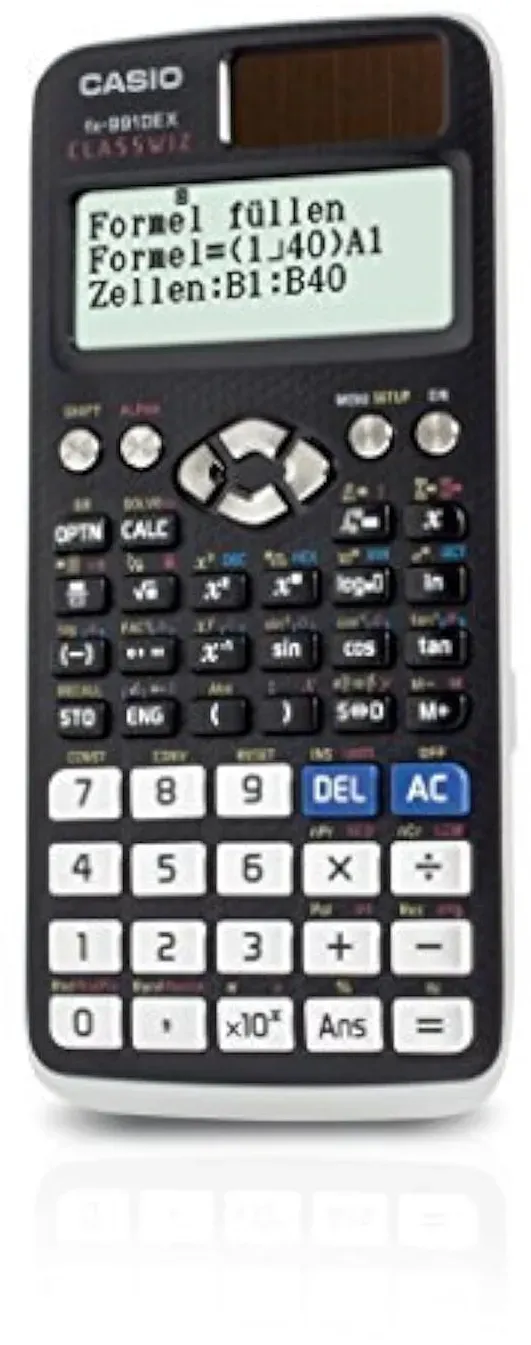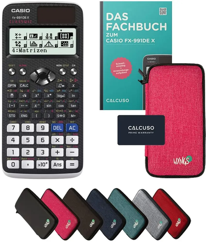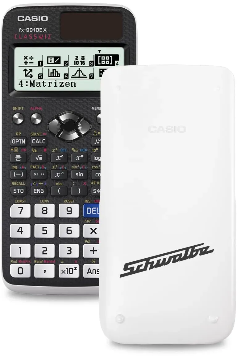 Kategorie: Taschenrechner - Casio - GTIN:4062401018318 - Das Smart Paket von CALCUSO bietet eine ideale Kombination aus dem leistungsstarken Casio fx-991DE X, einer robusten Schutztasche von WYNGS und einem praxisnahen Fachbuch. Es ist perfekt für den täglichen Einsatz in Schule, Studium und Büro und sorgt für zuverlässige Berechnungen, sicheren Schutz unterwegs und wertvolles Zusatzwissen. Der Casio fx-991DE X ist ein leistungsstarker Taschenrechner mit 552 Funktionen, darunter für Mathematik, Trigonometrie und Statistik. Mit seinem klaren Display und langen Batterielebensdauer ist er perfekt für den Einsatz in Schule und Studium geeignet. Robuste WYNGS Schutztasche: Die Schutztasche bietet optimalen Schutz für Ihren Casio fx-991DE X. Sie schützt zuverlässig vor Spritzern, Stößen und Kratzern perfekt für unterwegs, Schule oder Studium. So bleibt Ihr Taschenrechner länger einsatzbereit! Fachbuch und erweiterte Ergänzend zum Taschenrechner enthält das Set ein praxisnahes Fachbuch mit 128 in DIN A5, das wichtige mathematische Konzepte leicht verständlich erklärt und das Lernen unterstützt. Zudem profitieren Sie von der exklusiven CALCUSO verlängerung auf , sodass Sie langfristig abgesichert sind für Zuverlässigkeit in Schule, Studium und Beruf. Das Set enthält den Casio fx-991DE X, eine WYNGS Schutztasche in Pink, ein Fachbuch zur Unterstützung beim Lernen sowie die erweiterte CALCUSO- . Perfekt für Schule, Studium und Beruf! - 43,99 Euro bei Amazon Marketplace CE - ... Dieses Angebot ist im oberen Preissegment angesiedelt und bietet den Casio FX-991DEX ClassWiz mit Solar-/Batteriebetrieb. ![]() CASIO Schulrechner FX991DEX ClassWiz Solar/Batterie