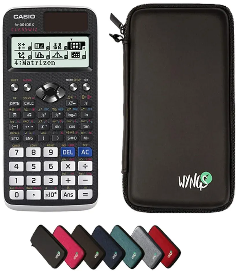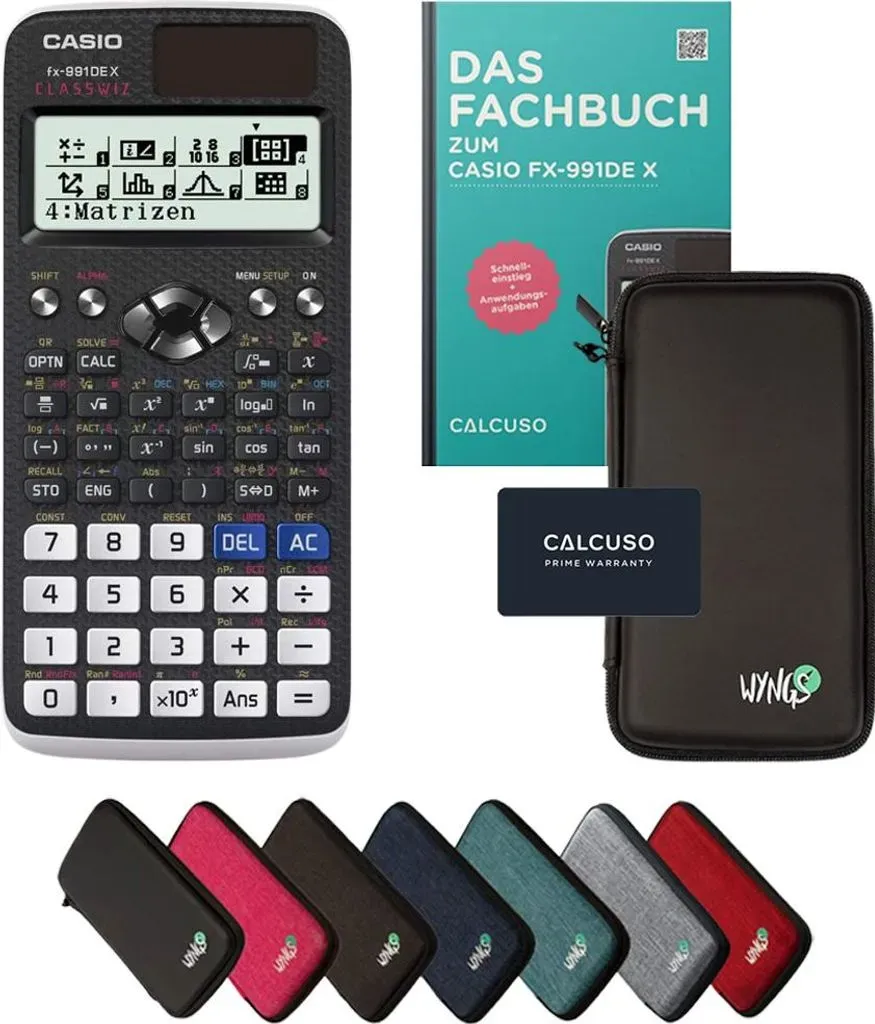 Kategorie: Taschenrechner - Casio - GTIN:4062401022308 - CALCUSO Standardpaket Schwarz vom Taschenrechner Casio FX-991DE XCasio FX-991DE X Technisch-wissenschaftlicher Rechner mit innovativem LC-Display, Tabellenkalkulation und QR-Code-Ergebnisvisualisierung. Merkmale: 696 Funktionen, Solar + Batterie, AbschaltautomatikWYNGS SchutztascheRobustes Hartschalengehäuse für den idealen SchutzPräzise PassformDreiseitiger Reißverschluss für sichere AufbewahrungFachbuch zum TaschenrechnerAuf einzelne Taschenrechner abgestimmtSchritt-für-Schritt-Anleitungen und übungsaufgabenEnthält übungsaufgabenExpress-AustauschserviceSchutz und Sicherheit für Immer sofort ein neues Gerät erhalten - 39,99 Euro bei Kaufland.de - gefunden von billiger.de Ein "Basic Set" mit Schutztasche, das einen guten Mehrwert für den Schutz des Rechners bietet. ![]() ![]() Casio fx-991DE X Classwiz inkl. WYNGS Schutztasche Schwarz - Wissenschaftlicher Taschenrechner - Basic Set