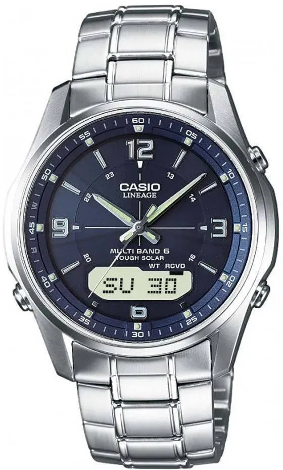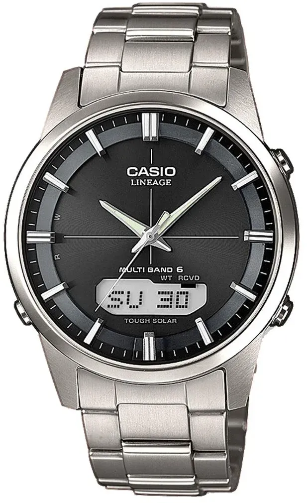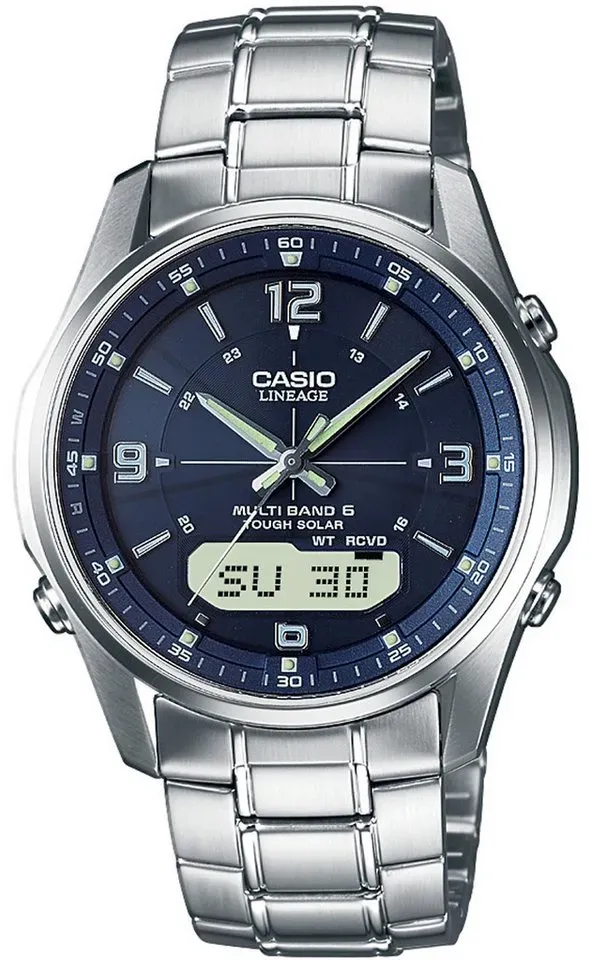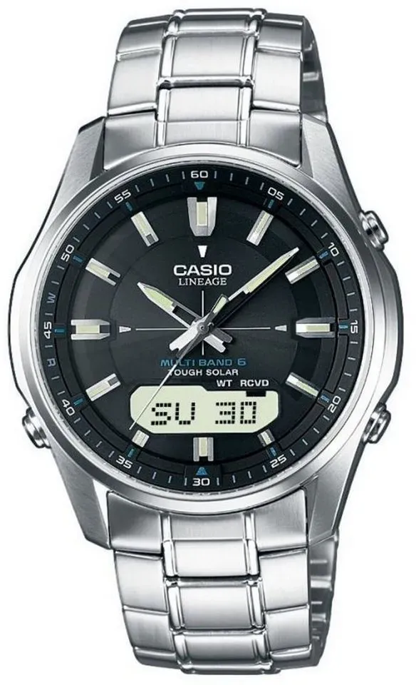 Kategorie: Chronographen - Casio - GTIN:4971850989844 - Funkuhr Solarbetrieb Weltzeit Funktion Massiver Edelstahl Saphirglas - 219,99 Euro bei Amazon Marketplace Watches - gefunden von billiger.de Ein beliebtes Modell aus Titan mit Analog-Digital-Anzeige, das von mehreren Händlern angeboten wird. ![]() ![]() Casio HerrenArmbanduhr Analog-Digital Quarz Titan LCW-M170TD-1AER