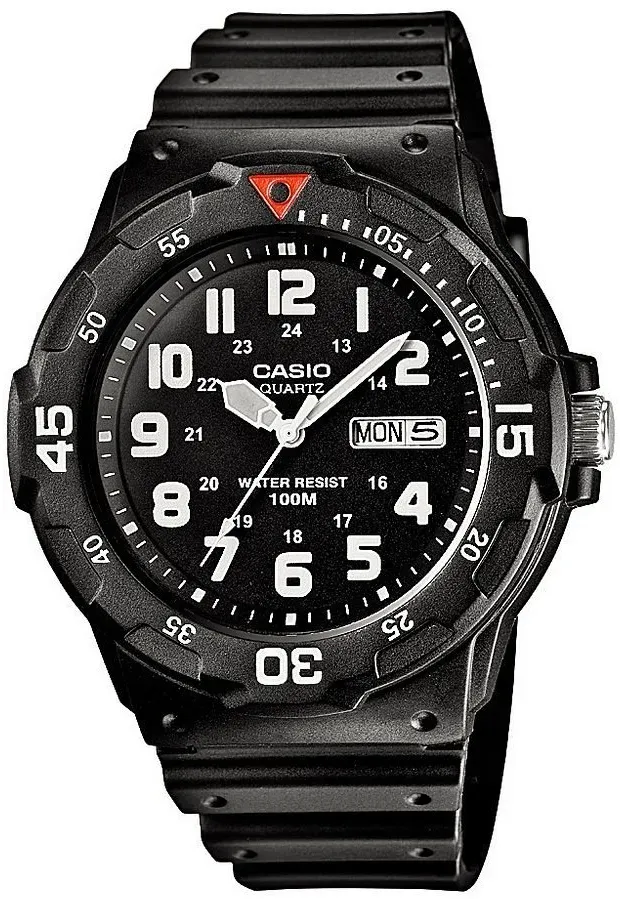 lieferbar-in 1-2 Werktagen bei dirCASIO TIMELESS COLLECTION Quarzuhr MRW-200H-1BVEG, Armbanduhr, Herrenuhr, Resinarmband, Datum, bis 10 bar wasserdicht schwarz