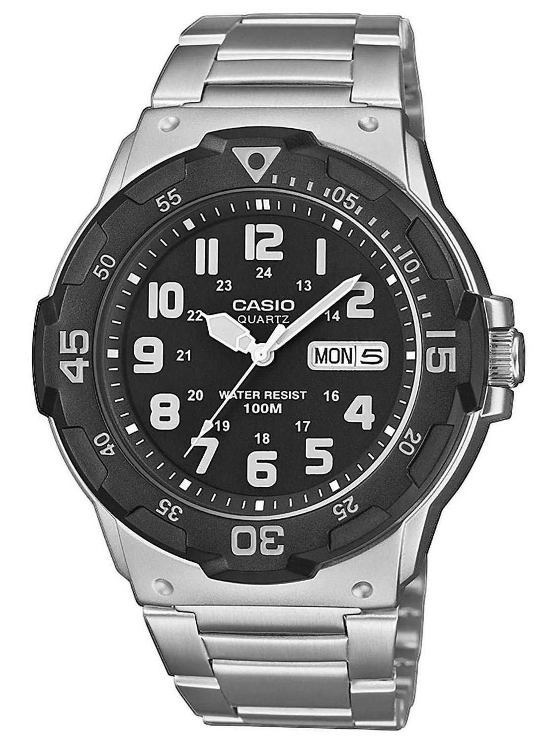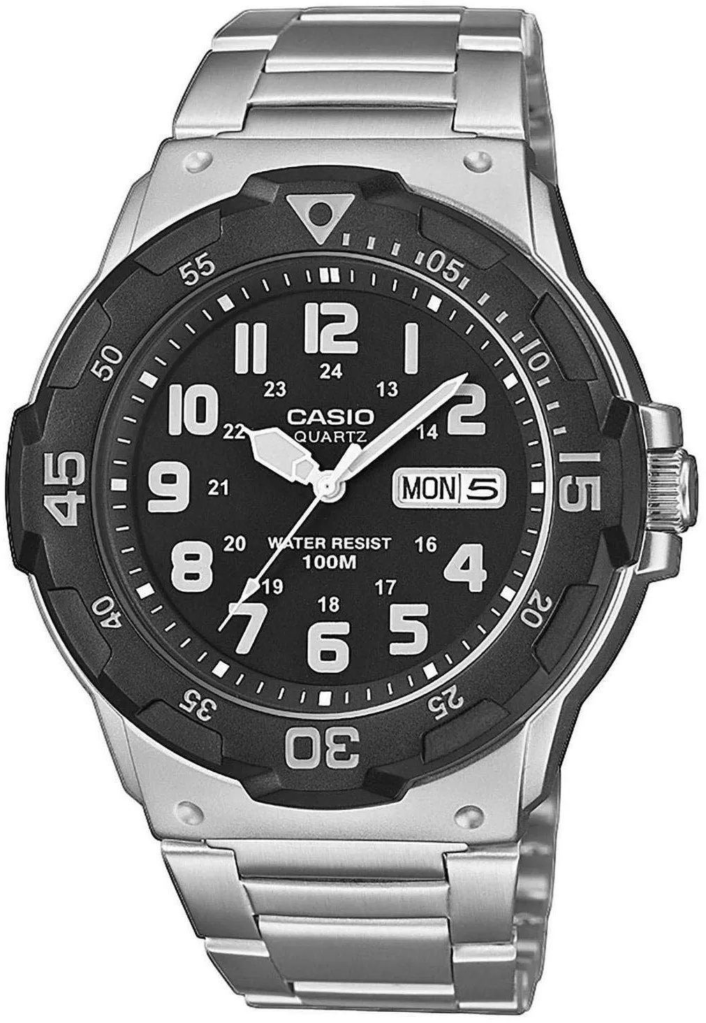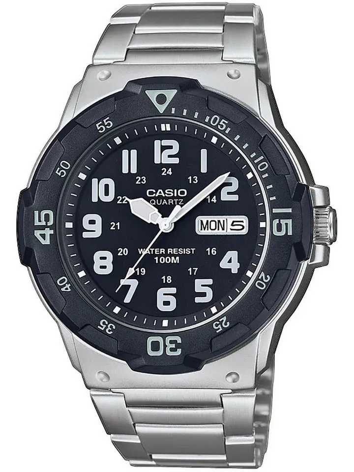 Kategorie: Herrenuhren - Casio - GTIN:4549526251535 - Antrieb , Quarz, Anzeige , Analog, Datumsfunktionen , Die Uhr zeigt das aktuelle Tagesdatum und den Wochentag an., Zifferblattfarbe , Schwarz, Armbandfarbe , Silber, Gehäusematerial , Resin, Armbandmaterial , Edelstahl, Verschluss Armband , Darauf ist Verlass: Das Armband dieser Uhr ist mit einem besonders sicheren Verschluss versehen, de, Gehäusebreite , 45 mm, Batterie-/Akku-Technologie , batterie, WEEE-Reg.-Nr. DE , 87608106, - 47,00 Euro bei OTTO - gefunden von billiger.de ![]() ![]() Casio MRW-200HD-BVEF - Herrenuhr Edelstahl eBay CASIO COLLECTION Silber