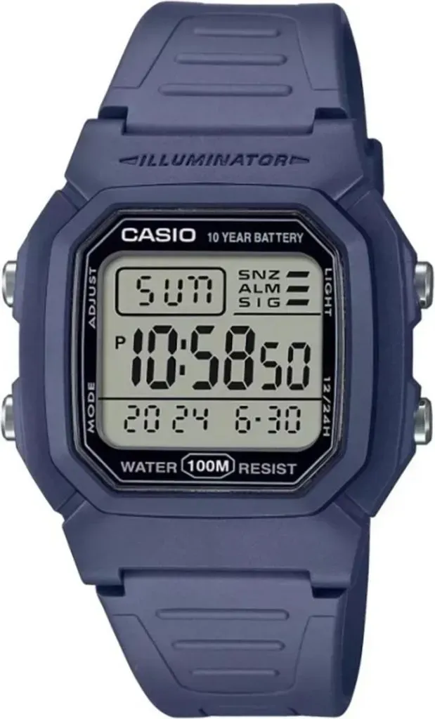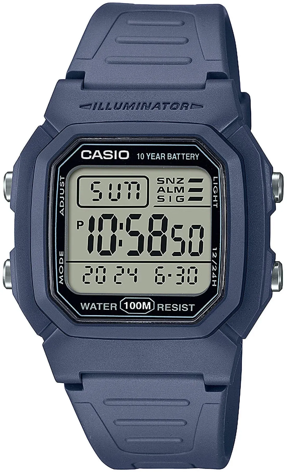 Zustand: Collectible - Armbanduhren Armbanduhren für Herren - Casio - W-800H-5AVDF - EAN: 4549526365065 - 44,2 x 36,8 x 13,4 mm Wasserdicht bis 100 m Vollständiger automatischer Kalender (bis Jahr 2099) - 1 Händler im amazon.de Marketplace Diese Casio Herren Armbanduhr W-800H-2AVES digital ist ein gutes Angebot für die blaue Variante. ![]() ![]() Casio Herren Armbanduhr W-800H-2AVES digital
