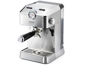 Kaffeemaschinen Kaffee- und Espressomaschinen - EAN:4038437018202 - Für handwerklichen Kaffeegenuss - Caso R Espresso Gourmet Siebträgermaschine silberDie caso R Espresso Gourmet Siebträgermaschine silber macht aus dem Kaffeekochen ein Ritual. Sie können die Aromenvielfalt voll ausschöpfen und erhalten Ergebnisse, die an italienische Bars erinnern.Welche Vorteile hat das Brühsystem?Bei der Kaffeezubereitung über einen Siebträger wird Wasser mit starkem Druck durch das Espressopulver gepresst. Da es hierbei nur kurz mit dem Pulver in Berührung kommt, nimmt es deutlich weniger Bitterstoffe auf als bei manch anderen Brühsystemen.Was das Produkt besonders machtDas zeichnet dieses Modell aus: praktisches Manometer zur Anzeige des Brühdrucks.Sehr einfache HandhabungDie Bedienung des Automats erfolgt mittels Drehregler und Drucktasten.Die richtige PowerMit 1100 W erhalten Sie Ihr Heißgetränk in kürzester Zeit. Des Weiteren verfügt das Modell über eine Hochleistungswasserpumpe mit einem Wasserdruck von 19 bar.MaterialeigenschaftenDie caso R Espresso Gourmet Siebträgermaschine silber ist aus Edelstahl gefertigt. Dieses Material sorgt dafür, dass sie widerstandsfähig und pflegeleicht ist.Mit 1,5 l großem WassertankDer Artikel verfügt über einen Tank mit insgesamt 1,5 l. Das Modell hat eine Größe von 19,5 cm x 22,5 cm x 35,0 cm (BxTxH). Mit der neutralen Farbe in Silber passt der Artikel wunderbar in jede Küche.Danach haben Sie gesucht?3 Filtereinsätze, Tamper, Milchkännchen, ... ![]() Caso Espresso Gourmet, Siebträgermaschine, Silber