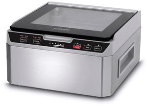 Zustand: Gebraucht - Elektrische Küchengeräte - Caso CASO Design - 1417 - EAN: 4038437014174 - LÄNGER FRISCH - Der kompakte Kammervakuumierer bietet vielseitige Funktionen und eignet sich ideal für das Vakuumieren von harten, weichen, trockenen und flüssigen Lebensmitteln. Er verfügt über eine individuell einstellbare Vakuum- und Schweißfunktion, eine manuell einstellbare Schweißzeit und eine Marinierfunktion. FOOD MANAGER - Die kostenlose Food Manager App für Android and iOS unterstützt Sie beim Überblick über Ihren Kühlschrank. Durch die Erinnerungsfunktion haben Sie auf einen Blick eine übersichtliche Liste von fälligen Lebensmitteln. Verwalten Sie Ihre Speisen und Vorräte ganz einfach und nachhaltig. VIELSEITIG - Der Vakuumsystem verfügt über eine leistungsstarke und schnelle 4-Kolben-Vakuumpumpe mit einer Förderleistung von 70l min. Die Kammer hat eine Größe von 2605x60x2605mm (ca. 3 Liter). DESIGN - Gehäuse und Vakuumkammer bestehen aus hochwertigen Edelstahl. Der gewölbte Glasdeckel aus Temperglas ist transparent und extra stark. SCHWEIßFUNKTION - Die doppelte 2 mm dicke Schweißnaht eignet sich für Beutel bis zu 30 cm Breite und ermöglicht auch das Vakuumieren außerhalb des Gerätes mit Strukturbeuteln, ideal für besonders große Lebensmittel. Dank des zusätzlichen Schlauchanschlusses können auch Vakuumbehälter und Vacu ZIP-Bags vakuumiert werden (Adapter erforderlich). - 17 Händler im amazon.de Marketplace ![]() ![]()