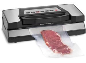 Küchenkleingeräte Wohnen - - Vielseitige Funktionen: Automatisches Vakuumieren und Schweißen, 3 regulierbare Schweißzeiten für trockene und feuchte Lebensmittel. Manuelles Verschweißen, Vakuumbehälter-/Marinierfunktion, manuell regulierbares, stufenlose Vakuumstärke, Allgemein: Weitere Vorteile: Doppelte Schweißnaht mit max. 30 cm Breite bei beliebiger Beutellänge. Integriertes Rollenfach mit praktischem Cutter und praktischer Fortschrittanzeige, Herausnehmbare Vakuumkammer für eine leichte Reinigung, Elektronische Temperaturüberwachung, Inkl. 1 Profi-Folienrolle 20x300 cm, 1 Profi-Folienrolle 28x300 cm und 1 Vakuumierschlauch (bitte lesen Sie in der BDA, wo sich der Vakuumierschlauch befindet) für Behälter, Handhabung Komfort: Betriebsart: elektrisch, Eigenschaften Cutter: integriert, Farbe Material: Farbbezeichnung: schwarz/silberfarben, Material Gehäuse: Kunststoff, Edelstahl, Maße Gewicht: Höhe: 12 cm, Breite: 40 cm, Tiefe: 19,5 cm, Gewicht: 2,8 kg, Technische Daten: Leistung: 130 W, Spannung: 220-240, Vakuumdruck maximal: -0,9 bar, Breite Folienbeutel maximal: 30 cm, Breite Schweißnaht: 2,5 mm, Art Schweißnaht: doppelt, Vakuumierleistung: 20 l/min, Art Vakuumpumpe: Kolbenpumpe, WEEE-Reg.-Nr. DE: 23.388.595, Programme Funktionen: Funktionen: Absaugen, Absaugen und Versiegeln in einem Arbeitsgang, Behälter-/Marinierfunktion, Schweißfunktion, Stopp-Funktion, Zeitfunktionen: einstellbare Verschweißzeit, Ausstattung: Ausstattung: Cutter, Schlauchanschluss zur ... ![]() CASO Vakuumierer '1527 VRH 690 advanced', silber (schwarz, silberfarben), B:40cm H:12cm T:19,5cm, Vakuumierer
