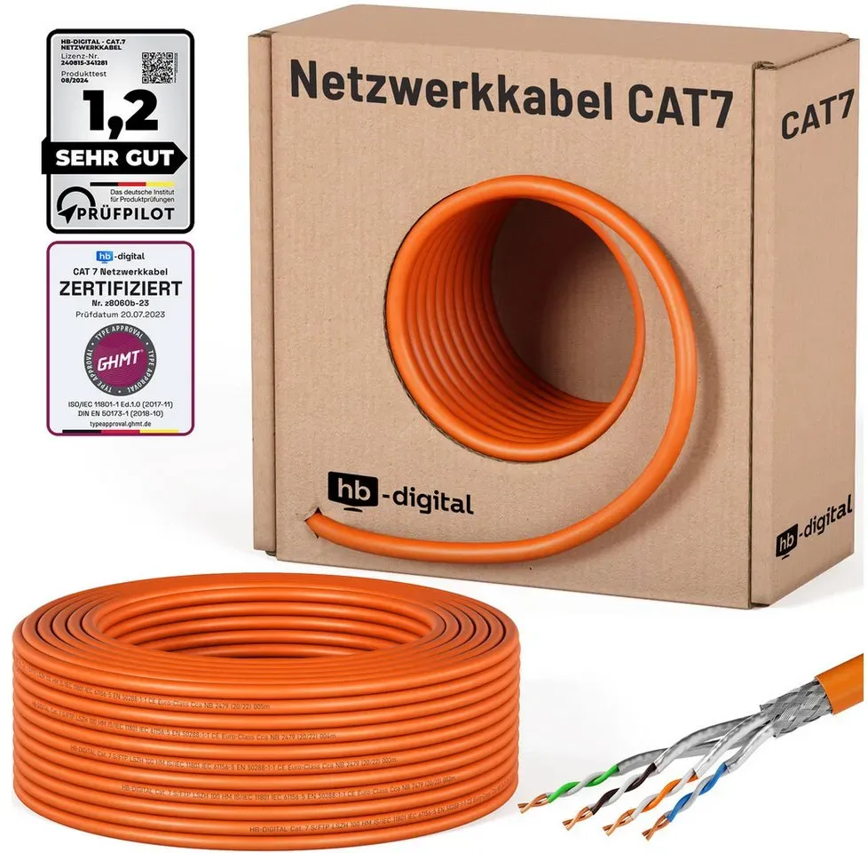 0.90 /1m - Kategorie: Netzwerkkabel - deleyCON - GTIN:4250580145806 - Technische Daten WEEE-Reg.-Nr. DE , 81933733, - 45,00 Euro bei OTTO - gefunden von billiger.de Dieses GHMT-zertifizierte HB-DIGITAL Kabel für 47.90 Euro bietet reines Kupfer und ist eine ausgezeichnete Wahl für anspruchsvolle Installationen. ![]() ![]() HB-DIGITAL 50m CAT 7 Netzwerkkabel LAN Kabel Verlegekabel Ethernet Installationskabel 10 Gbit/s AWG23 S/FTP - GHMT Zertifiziert - reines Kupfer LSZH BauPVO Klasse Cca Datenkabel Simplex - Orange