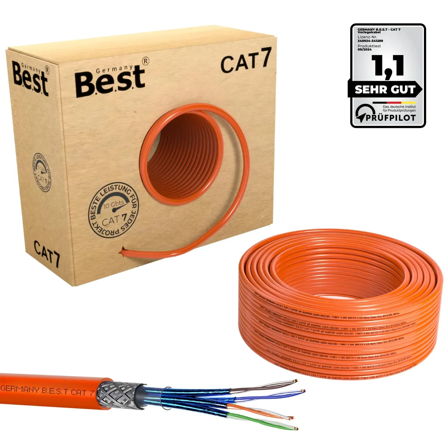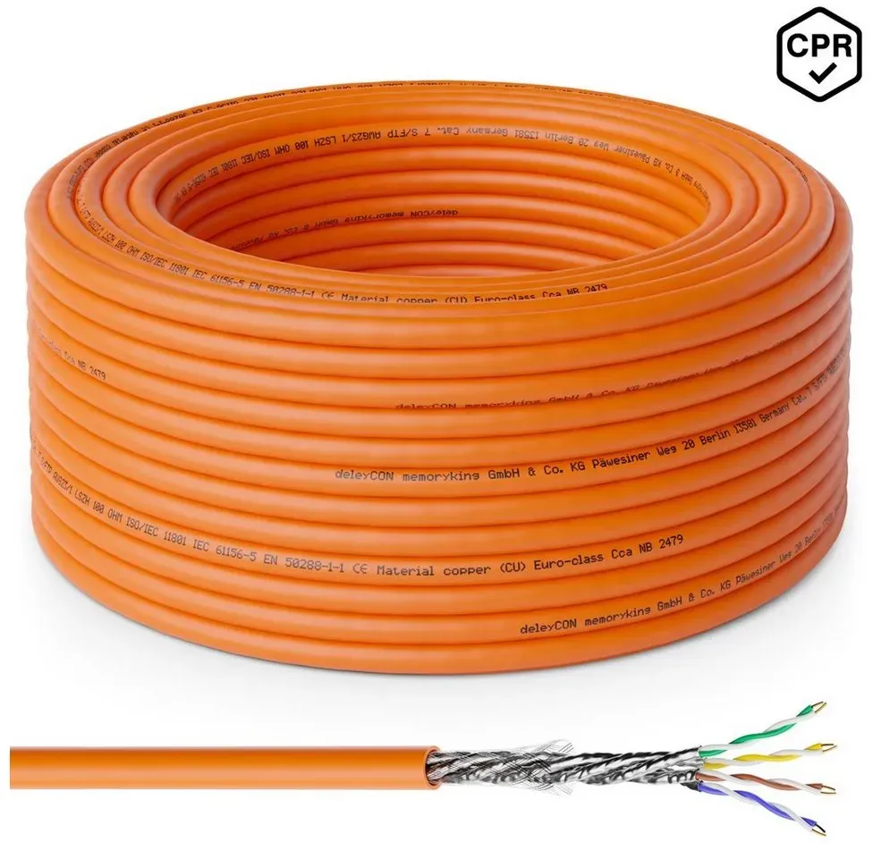 Kategorie: Netzwerkkabel - HB-Digital - GTIN:4260470848137 - Geprüfte Qualität und Sicherheit: GHMT-zertifiziert, Brandschutzklasse Cca s1a d1 a1 (EN 50575:2014) für maximale Sicherheit in Gebäuden, ideal für öffentliche Bereiche und Wohnanlagen. LSZH-Mantel und Robustheit: Halogenfreier Außenmantel ( 7,2 mm) minimiert Rauch- und Giftgasentwicklung im Brandfall, erhöht die Sicherheit und erleichtert die Installation. Höchste Netzleistung: Unterstützt übertragungsgeschwindigkeiten bis zu 10 Gbit/s bei 1000 MHz perfekt für Hochgeschwindigkeitsnetzwerke, professionelle IT-Infrastruktur und Neubauprojekte. Erstklassige Materialien: Reiner Kupferleiter ( 0,56 mm, AWG23) und doppelte S/FTP-Abschirmung ren eine stabile und störungsfreie Datenübertragung. Flexibel und vielseitig einsetzbar: Perfekt für die Verlegung in Wänden, Böden und Kabelkanälen kompatibel mit internationalen Standards ISO/IEC 11801 und RoHS. - 47,90 Euro bei Amazon Marketplace CE - gefunden von billiger.de Dieses deleyCON Kabel für 48.99 Euro ist GHMT-zertifiziert und halogenfrei, was es zu einer sicheren und leistungsstarken Option macht. ![]() ![]() deleyCON 50m CAT.7 Verlegekabel Kupfer Starr S/FTP PIMF Netzwerkkabel Installationskabel LAN Kabel Ethernet Datenkabel Gigabit CAT7 10 Gbit 1000 MHz LSZH Halogenfrei BauPVO - GHMT Zertifiziert