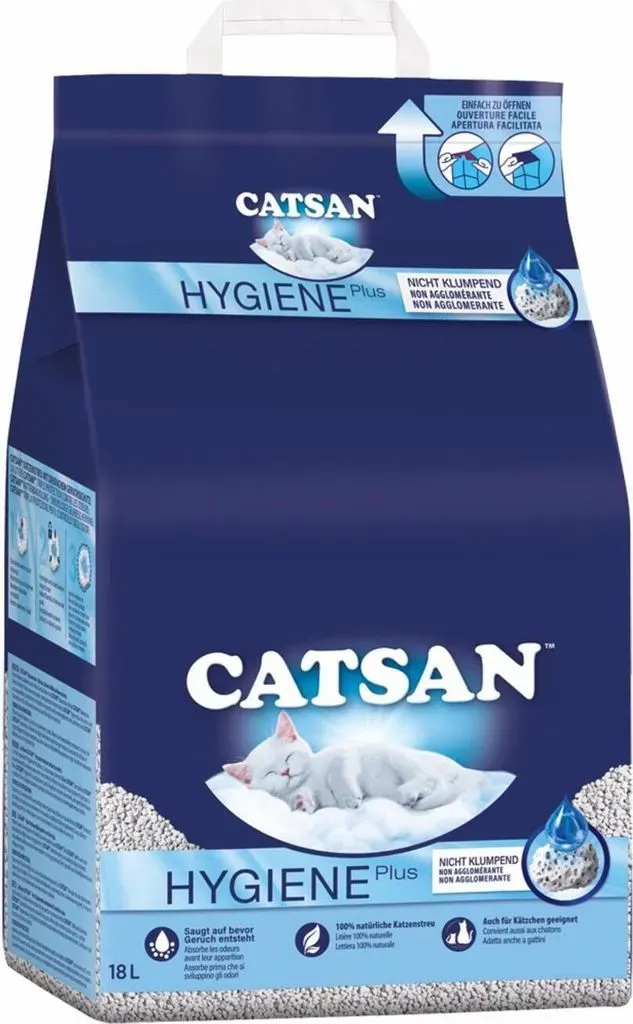 Catsan - EAN: 4008429130434 - CATSAN Hygiene Plus ist eine hochwirksame, nicht-klumpende Katzenstreu, die Flüssigkeit schnell und effektiv aufsaugt, bevor Geruch entsteht. - bei zooroyal.de - aus Yadore Produktdaten ![]() ![]() Catsan Hygiene Plus Streu 18l