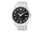Citizen - EAN: 4974374243355 - Citizen Funkuhr Eco-Drive Präzision trifft EleganzCitizen wurde bereits im Jahr 1918 gegründet und zählt heute zu den größten und renommiertesten Uhrenherstellern weltweit. Die beliebten Zeitmesser stehen für technische Kompetenz, modische Vielfalt und höchste Fertigungsqualität echter Manufakturarbeit.Die Citizen Funkuhr Eco-Drive ist der ideale Begleiter für Herren, die auf Qualität, Komfort und sportliche Eleganz setzen sei es im Alltag, im Berufsleben oder bei besonderen Anlässen. Das silberfarbene Edelstahlgehäuse in Kombination mit einem robusten Edelstahlarmband sorgt für einen stilvollen und zugleich widerstandsfähigen Auftritt.Mit einem Gehäusedurchmesser von 43 mm und einer Höhe von nur 10 mm eignet sich die Uhr hervorragend auch für schmalere Handgelenke. Das schwarze Zifferblatt mit arabischen Ziffern (6 und 12) und silberfarbenem Strichindex fügt sich nahtlos in das klare, harmonische Design ein. Für eine gute Ablesbarkeit auch bei Dunkelheit sorgen lumineszierende Zeiger.Technisch überzeugt die Uhr mit einem funkgesteuerten Quarzwerk mit Eco-Drive-Antrieb. Die Gangreserve beträgt 180 Tage bei voller Ladung, im Dunkelgangmodus sogar bis zu . Dank 4-Zonen-Funkempfang (Deutschland, USA, Japan, China), Weltzeitfunktion und ewigem Kalender (Perpetual Calendar) sind Sie weltweit stets auf die Sekunde genau informiert.Das kratzfeste und entspiegelte Saphirglas schützt das Zifferblatt zuverlässig vor Kratzern und Beschädigungen. Die ... ![]() ![]() Citizen Elegant - Funk CB0010-88E eBay Eco-Drive Saphir Edelstahl 10 bar Quarz Herren