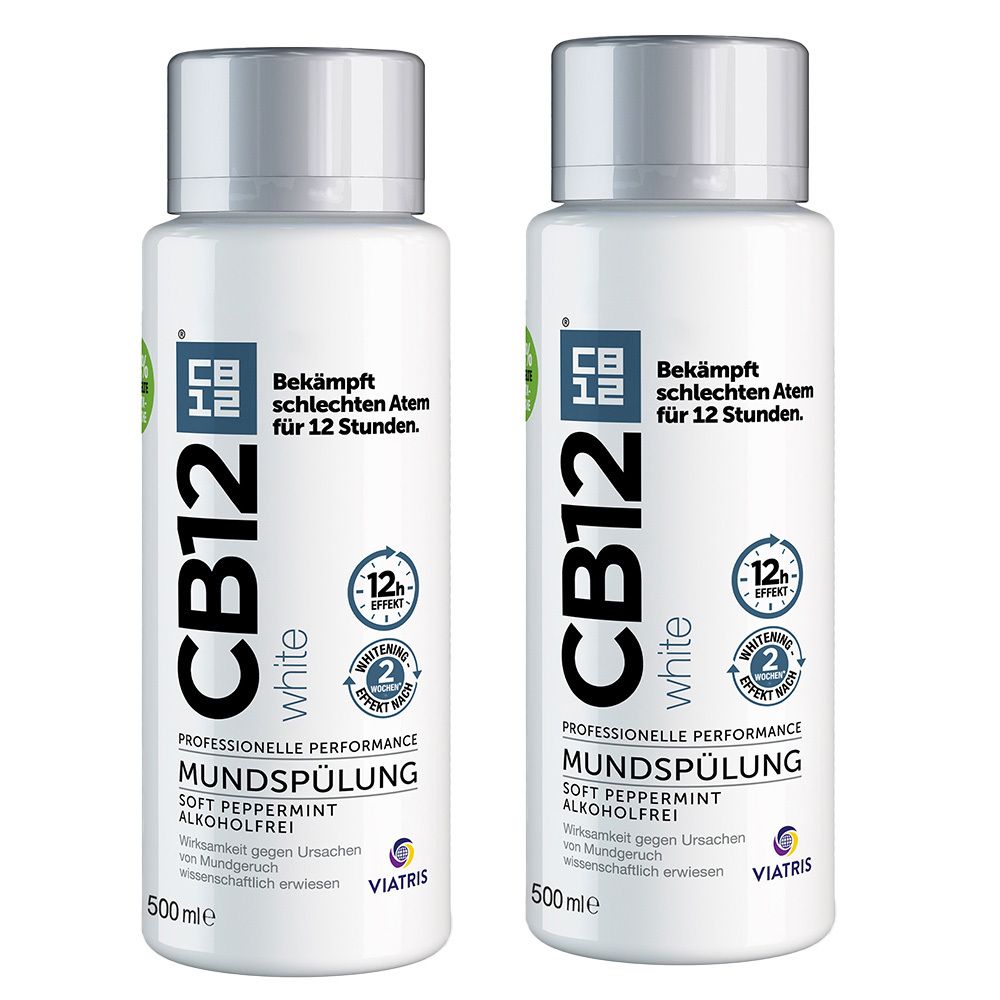 Cooper Consumer Health - ? ANTIBAKTERIELL: Oft sind die Ursache von Mundgeruch bakterielle Zersetzungsprodukte. Eine antibakterielle Mundspülung kann demnach in vielen Fällen die Ursache von Mundgeruch bekämpfen ? SYNERGETISCHE WIRKSTOFFE: CB12 White Mundspülung enthält Zinkacetat (0,3 Prozent) und Chlorhexidin (0,025 Prozent). Die Wirkstoffkombination bekämpft die Ursache von Mundgeruch für bis zu 12 Stunden ? ZAHNAUFHELLUNG: Die CB12 White Mundspülung beinhaltet eine Formel für weißere Zähne, die bei regelmäßiger Anwendung (2x täglich) für einen Aufhellungseffekt sorgt, der bereits nach zwei Wochen erkennbar ist ? MIT FRISCHEM MINZGESCHMACK: CB12 White Mundspülung hat einen angenehmen, milden Minzgeschmack, der zu einem frischen Atem beiträgt ? ANWENDUNG: CB12 White Mundspülung wird für die 2xtägliche Anwendung ab 1 n empfohlen. Nach dem Zähneputzen 30 bis 60 Sekunden lang mit 10 ml CB12 White Mundspülung reinigen, gurgeln und dann ausspucken. Nicht schlucken ? ALKOHOLFREI: CB12 Mundspülung enthält keinen Alkohol Erhalten Sie einen angenehmen Atem sowie eine zahnaufhellende Wirkung (bei mindestens 2xtäglicher Anwendung über 2 Wochen) mit CB12 White. Hierbei handelt es sich um eine Mundspülung mit sanftem Minzgeschmack, die die Ursache von Mundgeruch bekämpft und einen zahnaufhellenden Effekt hat. Regelmäßiges Spülen mit einer Mundspülung ist ein grundlegender Bestandteil einer guten Mundhygiene-Routine ? zusammen mit korrektem Zähneputzen inkl. Reinigung der ... Medikamente-per-Klick.de bietet die Mundspülung für 13,49 Euro an, eine solide Option für den Kauf bei einer bekannten Online-Apotheke. ![]() CB12 White Mundspülung gegen Mundgeruch 500 ml