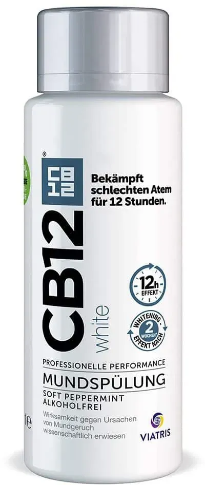 Verfügbarkeit: in 1 bis 2 Werktagen lieferbar - 35.00 € / 1 Liter - Kategorie: Zahnpflegeartikel - cooper consumer health - GTIN:4150116144900 - PZN:11614490 - ? ANTIBAKTERIELL: Oft sind die Ursache von Mundgeruch bakterielle Zersetzungsprodukte. Eine antibakterielle Mundspülung kann demnach in vielen Fällen die Ursache von Mundgeruch bekämpfen ? SYNERGETISCHE WIRKSTOFFE: CB12 White Mundspülung enthält Zinkacetat (0,3 Prozent) und Chlorhexidin (0,025 Prozent). Die Wirkstoffkombination bekämpft die Ursache von Mundgeruch für bis zu 12 Stunden ? ZAHNAUFHELLUNG: Die CB12 White Mundspülung beinhaltet eine Formel für weißere Zähne, die bei regelmäßiger Anwendung (2x täglich) für einen Aufhellungseffekt sorgt, der bereits nach zwei Wochen erkennbar ist ? MIT FRISCHEM MINZGESCHMACK: CB12 White Mundspülung hat einen angenehmen, milden Minzgeschmack, der zu einem frischen Atem beiträgt ? ANWENDUNG: CB12 White Mundspülung wird für die 2xtägliche Anwendung ab 1 n empfohlen. Nach dem Zähneputzen 30 bis 60 Sekunden lang mit 10 ml CB12 White Mundspülung reinigen, gurgeln und dann ausspucken. Nicht schlucken ? ALKOHOLFREI: CB12 Mundspülung enthält keinen Alkohol Erhalten Sie einen angenehmen Atem sowie eine zahnaufhellende Wirkung (bei mindestens 2xtäglicher Anwendung über 2 Wochen) mit CB12 White. Hierbei handelt es sich um eine Mundspülung mit sanftem Minzgeschmack, die die Ursache von Mundgeruch bekämpft und einen zahnaufhellenden Effekt hat. ... Für 9.29 Euro erhalten Sie hier eine 250ml Flasche, die eine gute Option für alle ist, die eine effektive Mundspülung suchen. ![]() ![]() cooper consumer health CB12 Mundspülung für weiße Zähne, gegen Mundgeruch für 12 Std.