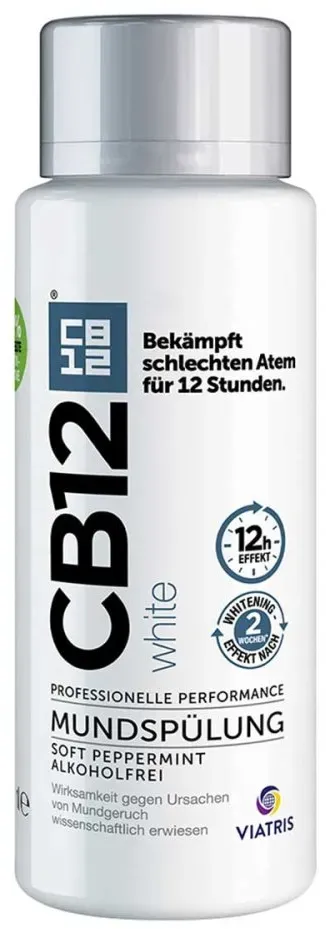 Verfügbarkeit: 1-2 Werktage - 29,12 €/l - Kategorie: Zahnpflegeartikel - cooper consumer health - GTIN:4150116144900 - PZN:11614490 - CB12 White Mundspülung 250 ml - rezeptfrei - von Cooper Consumer Health Deutschland GmbH - Spüllösung - 250 ml - 7,28 Euro bei DocMorris Apotheke - gefunden von billiger.de Für 7.49 Euro erhalten Sie hier eine 250ml Flasche mit detaillierter Produktbeschreibung, die die Vorteile für weiße Zähne und frischen Atem hervorhebt. ![]() ![]() CB12 White Mundspülung: Mundwasser für weißere Zähne und frischen Atem, mit Zinkacetat & Chlorhexidin, Geschmack Minze, alkoholfrei, 250ml