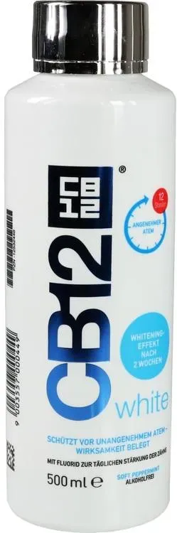 14 Händlerangebote bei billiger.de - Kategorie: Arzneimittel - CB12 - Anwendungsgebiet von Cb12 Mundspülung ZahnfleischschutzEntdecken Sie die Cb12 Mundspülung Zahnfleischschutz mit einer einzigartigen, patentierten Formel, die speziell entwickelt wurde, um Ihr Zahnfleisch zu schützen und zu pflegen. Die innovative Kombination aus Xylitol und Galacto-Oligosacchariden (GOS) bietet umfassenden Schutz für Ihre Mundgesundheit. Durch die Reduzierung von Plaquebildung und die Unterstützung einer gesunden Mundflora wirkt diese Mundspülung effektiv gegen schädlichen Biofilm.Cb12 Mundspülung Zahnfleischschutz bekämpft nicht nur Mundgeruch, sondern auch dessen Ursachen und sorgt so für langanhaltend frischen Atem bis zu 12 Stunden. Die alkoholfreie, sanfte Formel ist klinisch geprüft und zeigt eine hohe Wirksamkeit bei der Reduzierung von Zahnfleischentzündungen und Zahnfleischrückgang. Cb12 Mundspülung Zahnfleischschutz ist geeignet für Erwachsene und Kinder ab 1 n und schmeckt nach Minze.Wirkungsweise von Cb12 Mundspülung ZahnfleischschutzRegelmäßiges Spülen mit Cb12 Mundspülung Zahnfleischschutz führt zu einer Verschiebung der mikrobiellen Zusammensetzung hin zu einer gesünderen Mundflora und reduziert die Entzündungsneigung der Mundschleimhaut.Wirkstoffe / Inhaltsstoffe / ZutatenInhaltsstoffe von Cb12 Mundspülung Zahnfleischschutz:Aqua, Glycerin, Hydrogenated Starch Hydrolysate, Peg-40 Hydrogenated Castor Oil, Xylitol, Zinc Acetate, Sodium Fluoride, ... Diese CB12 White Mundspülung in der 500 ml Größe bietet eine gute Balance aus Menge und dem Vorteil weißerer Zähne. ![]() ![]() CB12 White Mundspülung 500 ml