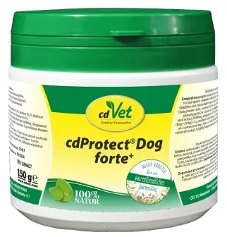 EAN: 4040056022201 - cdProtect Dog forte Ergänzungsfuttermittel für Hunde Wilde Kräuter für ein wurmfeindliches Darmmilieu, Pulver cdProtect Dog forte wurde für den speziellen Ernährungsbedarf entwickelt, der im Zusammenhang mit Wurmbesatz entsteht. Der Mangel an Kräuterinhaltstoffen, wie Saponine, Bitterstoffe und Gerbstoffe, kann bei unseren Haustieren zu einer Anfälligkeit für überhöhten Wurmbesatz führen. Im Gegensatz zu ihren in der Wildnis lebenden Artgenossen haben sie oftmals nicht die Möglichkeit, die genannten Stoffe durch Pflanzen und Kräuter aufzunehmen. Doch gerade diese Stoffe tragen bei ihren wilden Verwandten dazu bei, einen übermäßigen, krankhaften Wurmbesatz durch gesunde Ernährung zu vermeiden. Um seltener einen Grund für chemische Wurmkuren zu haben, sollte daher der Darm des Tieres mit entsprechenden Kräutern, die in cdProtect Dog forte enthalten sind, unterstützt werden. Dies erreichen Sie neben einer ausgewogenen Ernährung mit der gelegentlichen Zugabe der Futterergänzung cdProtect Dog forte, die den Mangel an Kräuterinhaltstoffen, wie Saponine, Bitterstoffe und Gerbstoffe, ausgleichen kann. Zudem empfehlen viele Fachleute für Parasitologie, den Wurmbesatz des Tieres durch eine regelmäßige überwachung der Kotproben zu prüfen. Zusammensetzung: Kürbiskerne, Möhrentrester, Walnussblätter, Hagebuttenfrüchte, Eschenrinde, Kokosraspeln, Korianderfrüchte, Bärlauchkraut, Eberrautenkraut, Thymianblätter, Löwenzahnkraut, Löwenzahnwurzel, ... ![]() cdProtect Dog forte+ 150g 75 g