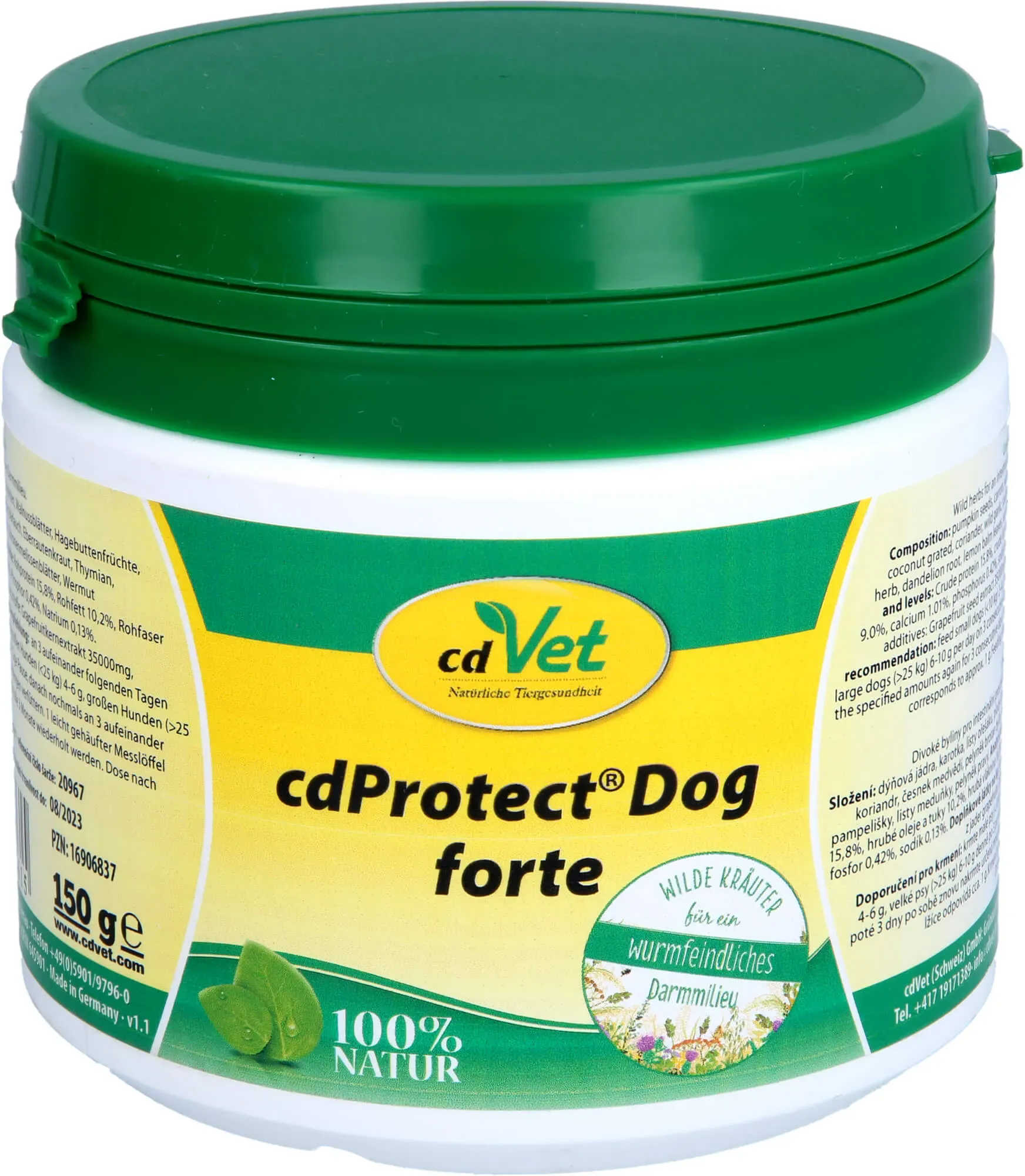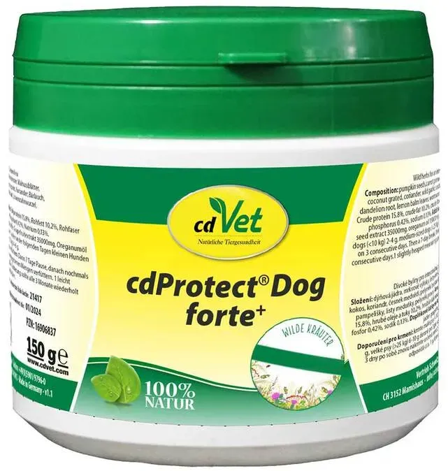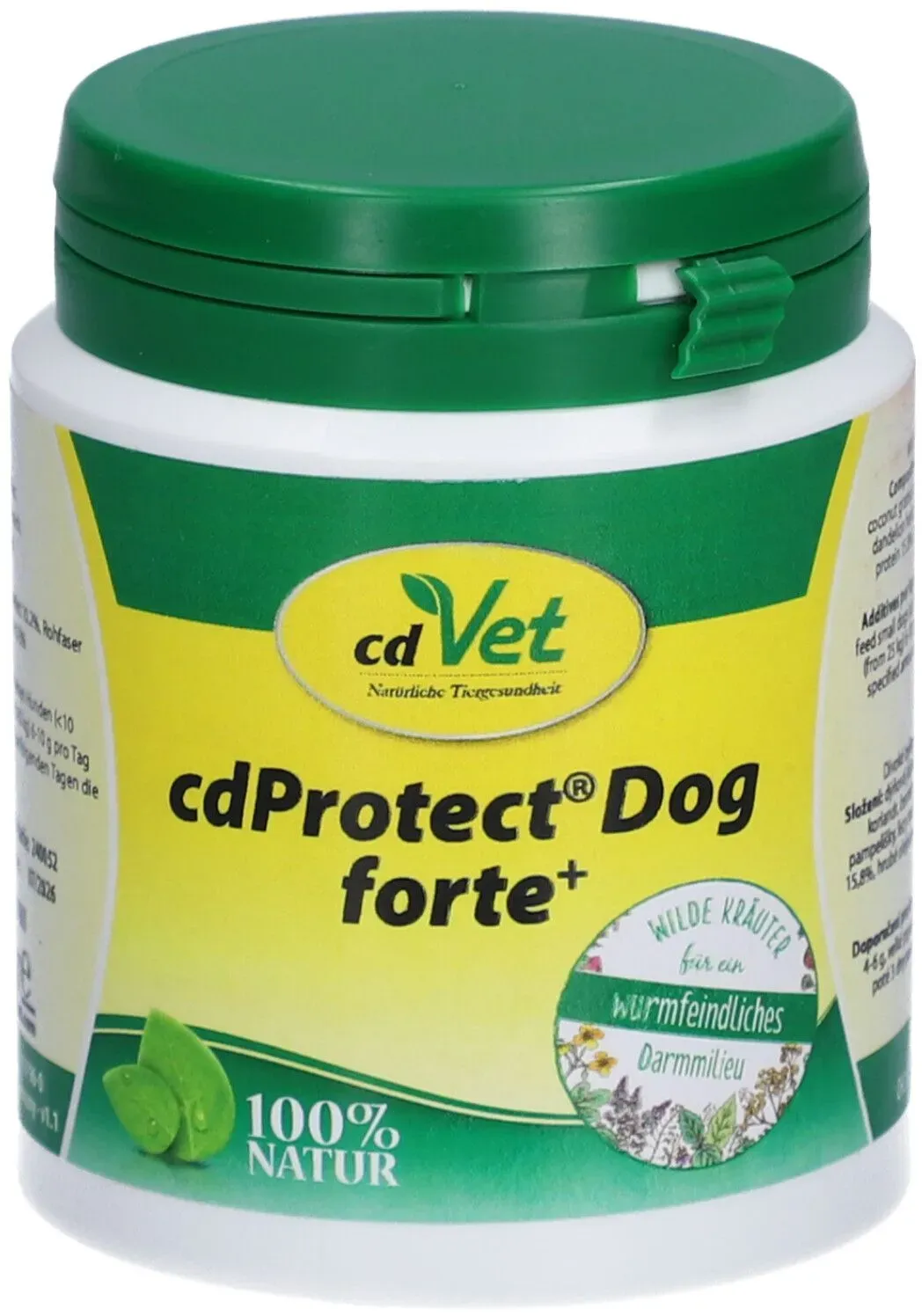 Cdprotect dog forte META PreisvergleichMit dem Meta-Preisvergleich suchen Sie gleichzeitig bei den großen Preisvergleich Portalen!Jetzt live Suche nach cdprotect dog forte starten! Cdprotect dog forte KaufberatungcdProtect Dog forte ist ein natürliches Nahrungsergänzungsmittel für Hunde, das ein wurmfeindliches Darmmilieu fördern soll. Es enthält eine ausgewogene Mischung aus wilden Kräutern wie Kürbiskernen, Karotten, Walnussblättern, Hagebutten, Eschenrinde, Koriander, Bärlauch, Thymian, Löwenzahn und Wermut. Diese Kräuter liefern wichtige Inhaltsstoffe wie Saponine, Bitterstoffe und Gerbstoffe, die die Widerstandsfähigkeit des Darms gegen Wurmbesatz unterstützen können[1][2][4]. Wichtige Hinweise: