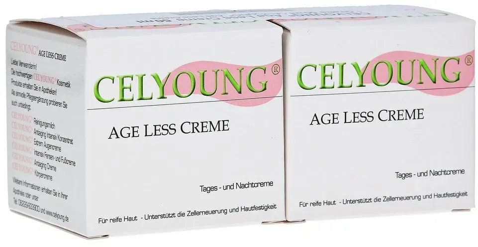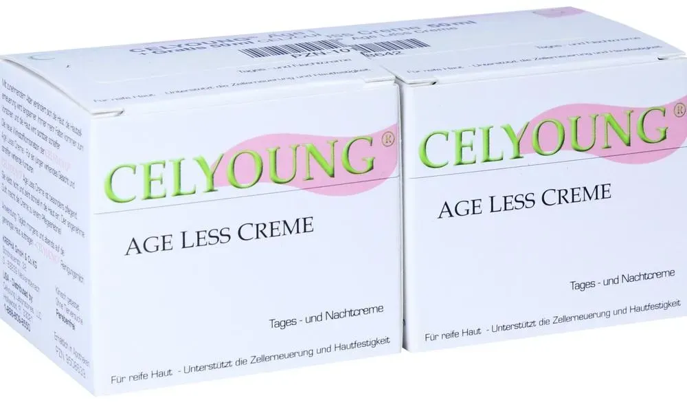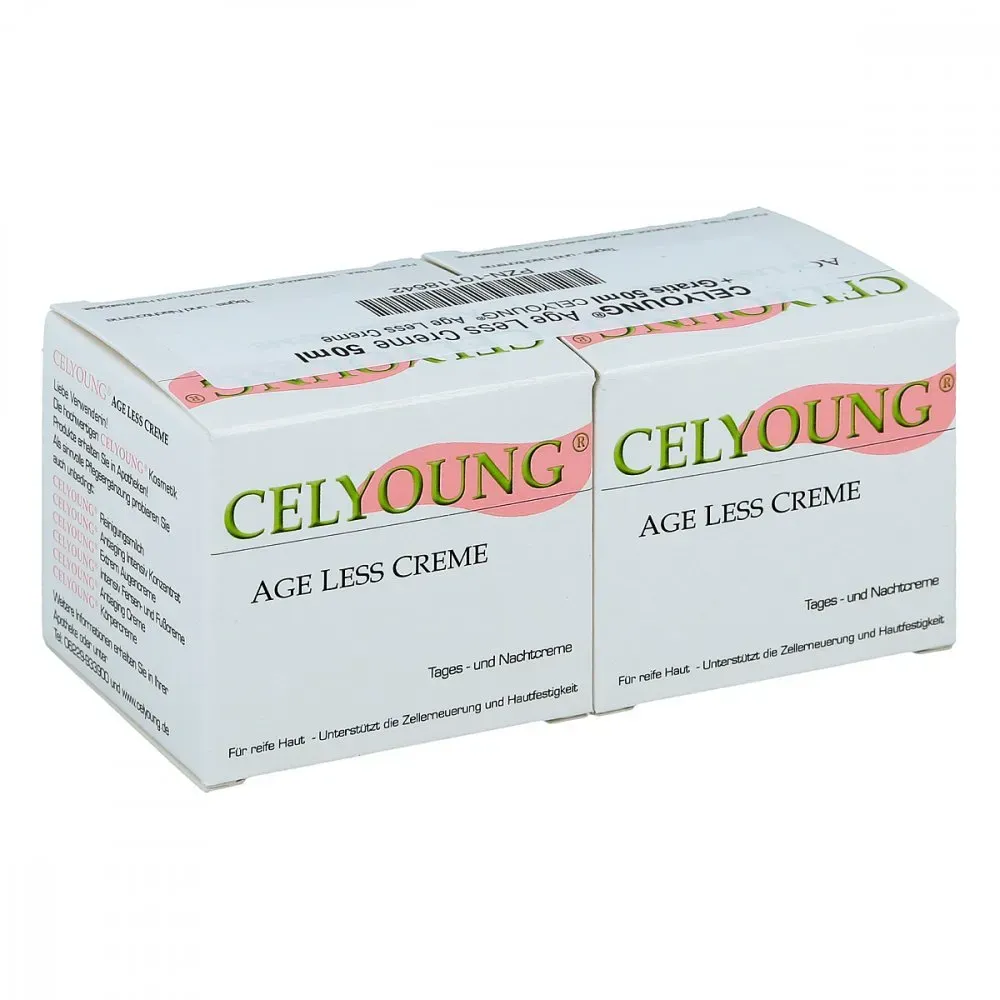 Celyoung - EAN: 04262397980112 - Celyoung age less Creme plus eine Gratis können in Ihrer Versandapotheke www.juvalis.de erworben werden. - bei juvalis.de - aus Yadore Produktdaten ![]() ![]() Krepha Celyoung Age Less Plus Gratis Age Less Creme 100 ML