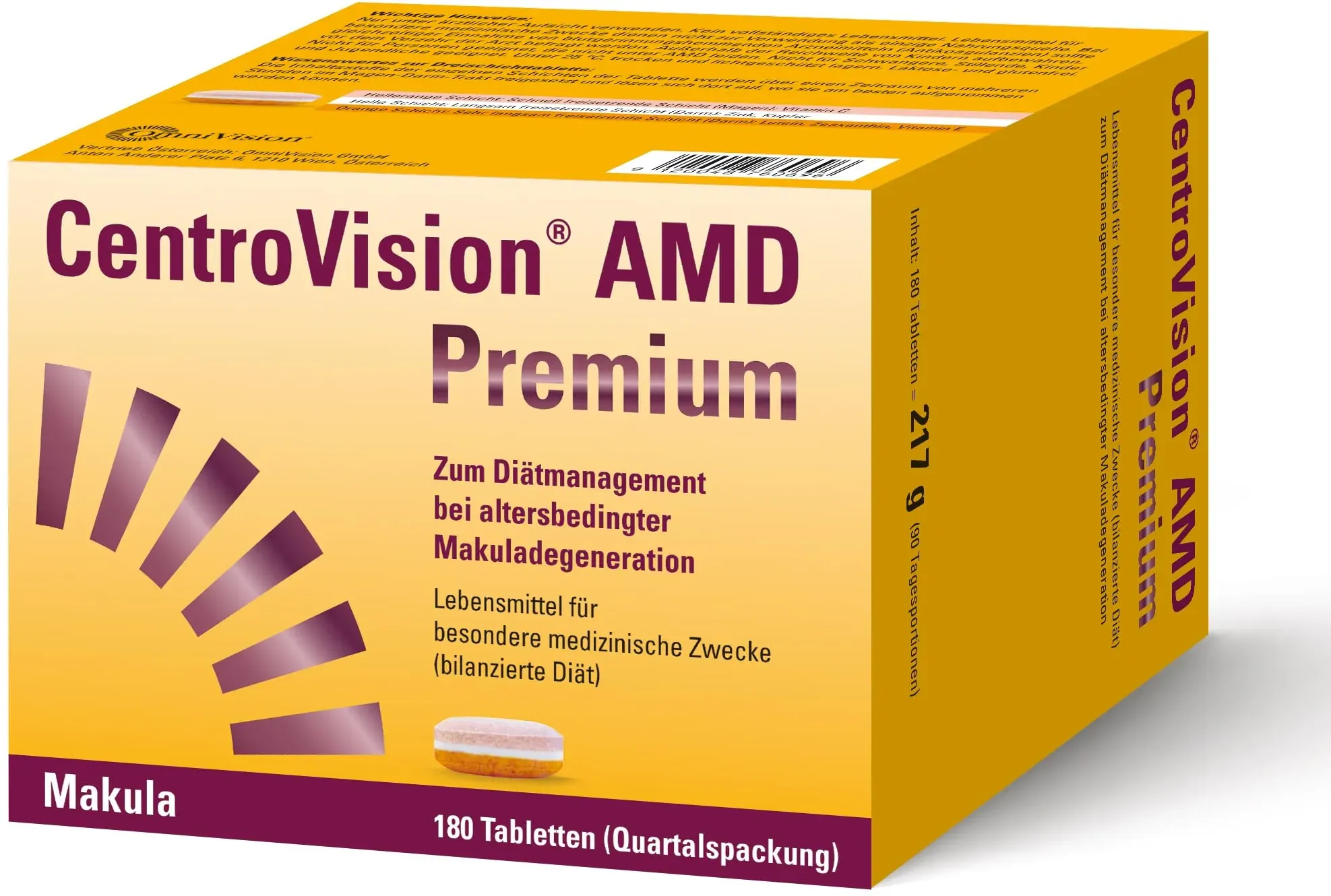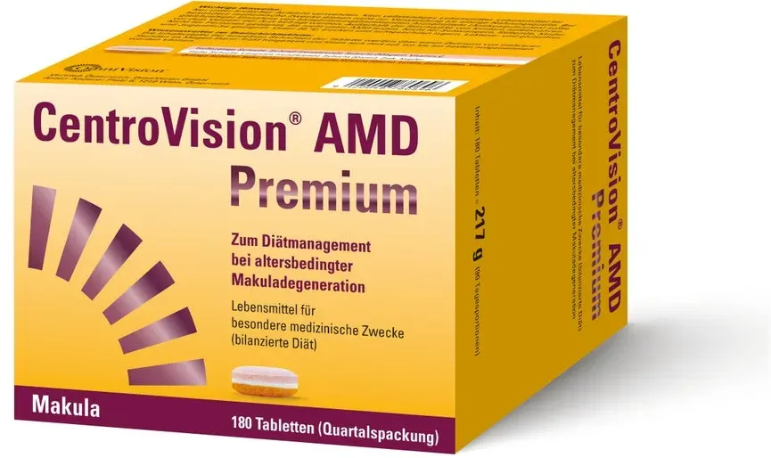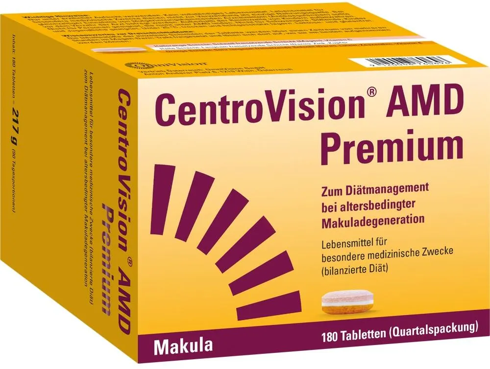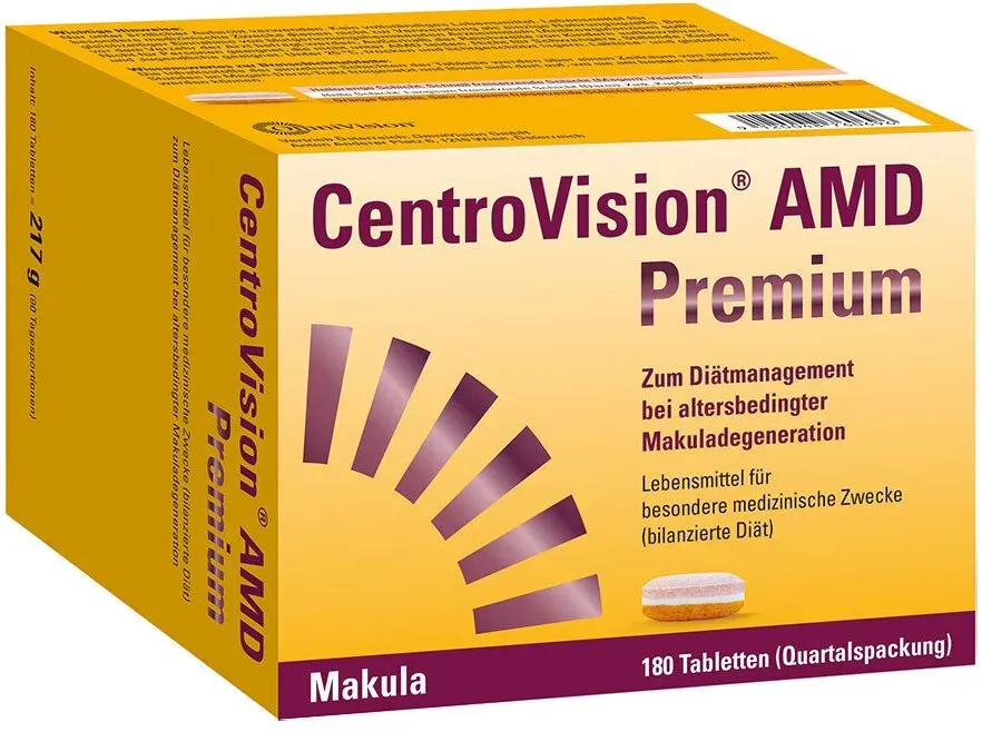 0,36 7 / 1 ct - CentroVision - EAN: 9120048760696 - Nahrungsergänzungsmittel sind kein Ersatz für eine ausgewogene und abwechslungsreiche Ernährung und eine gesunde Lebensweise. CentroVision AMD Premium ist ein Lebensmittel für besondere medizinische Zwecke (bilanzierte Diät), das speziell für das... - bei shop-apotheke.com - aus Yadore Produktdaten ![]() ![]() OmniVision Centrovision AMD Premium Tabletten 180 St