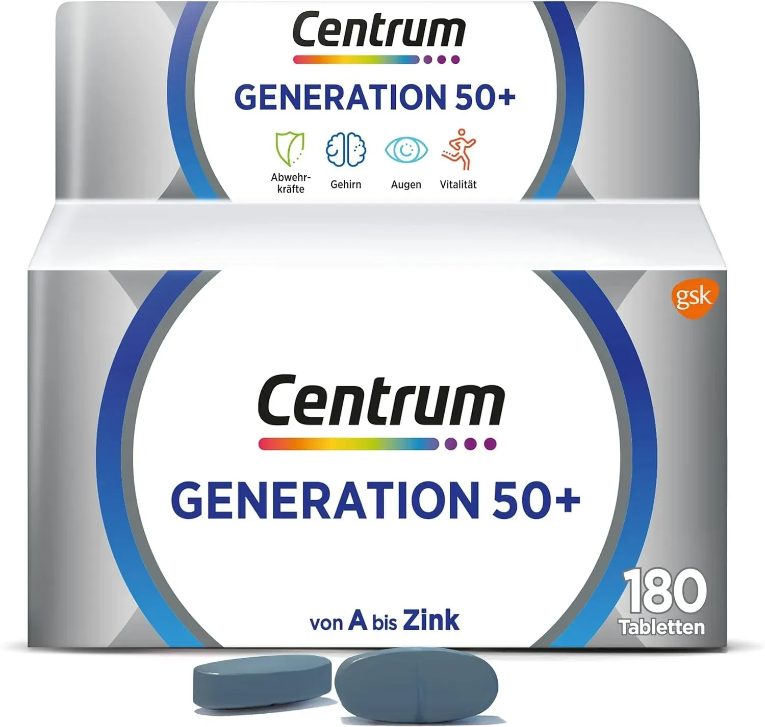 Zustand: Neu - 0,38 € / stück - Multivitamin & Mineralien Multivitaminpräparate & Mineralien - Centrum Haleon Germany GmbH - F000029092 - EAN: 4260639690171 - Die hochwertige Komplettversorgung Generation 50+ versorgt Sie mit lebensnotwendigen Vitaminen, Mineralstoffen und Spurenelementen Die Formulierung ist speziell für die Bedürfnisse von Best Agern ab 50 entwickelt Die Centrum Verpackungen werden derzeit sukzessive auf ein neues Design umgestellt; während der Umstellungszeit sind beide Versionen im Umlauf. Die Tablettenfarbe ist etwas dunkler als zuvor. glutenfrei - laktosefrei - gelatinefrei - 21 Händler im amazon.de Marketplace Dieses Angebot ist mit 37.99 Euro eine gute Option für die "Centrum R Generation 50+" mit 100 Stück. Medpex.de