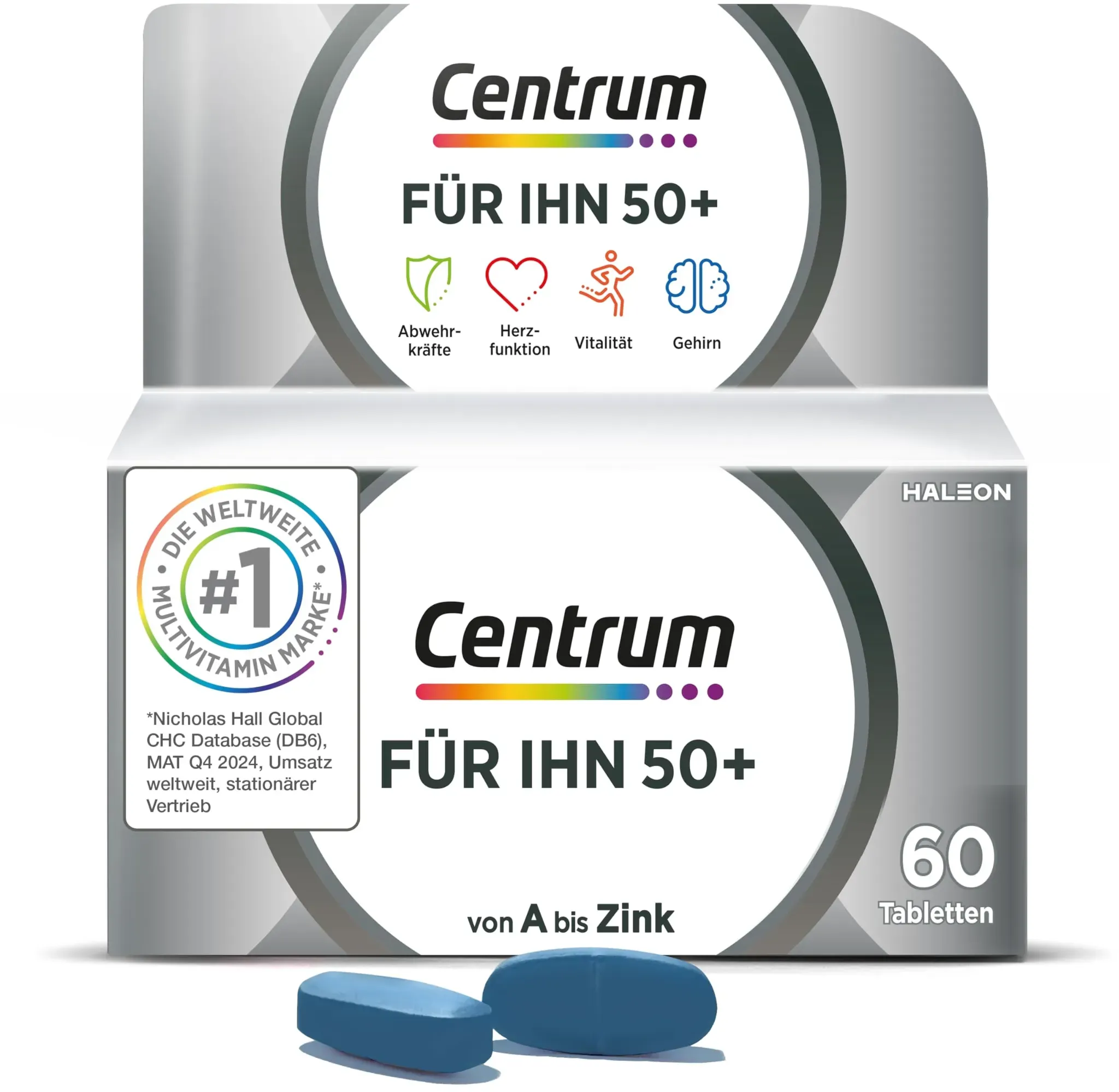 Zustand: Neu - 0,58 € / stück - Multivitamin & Mineralien Multivitaminpräparate & Mineralien - Centrum Pfizer Consumer Healthcare GmbH - 10110907 - EAN: 4150101109075 EAN: 4260639690195 - Die hochwertige Männer-Nährstoff-Formel versorgt Sie komplett mit lebensnotwendigen Vitaminen, Mineralstoffen und Spurenelementen Die Formulierung ist speziell für die Bedürfnisse von Männern ab 50 entwickelt Die Centrum Verpackungen werden derzeit sukzessive auf ein neues Design umgestellt; während der Umstellungszeit sind beide Versionen im Umlauf. Die Tablettenfarbe ist etwas dunkler als zuvor. glutenfrei - laktosefrei - gelatinefrei - bei Amazon.de Dieses Angebot ist mit 17.49 Euro eine gute Wahl für Männer, die "Centrum R Für Ihn 50+" mit 30 Stück ausprobieren möchten. Medpex.de Haleon Germany GmbH Centrum R Für Ihn 50+ 30 St