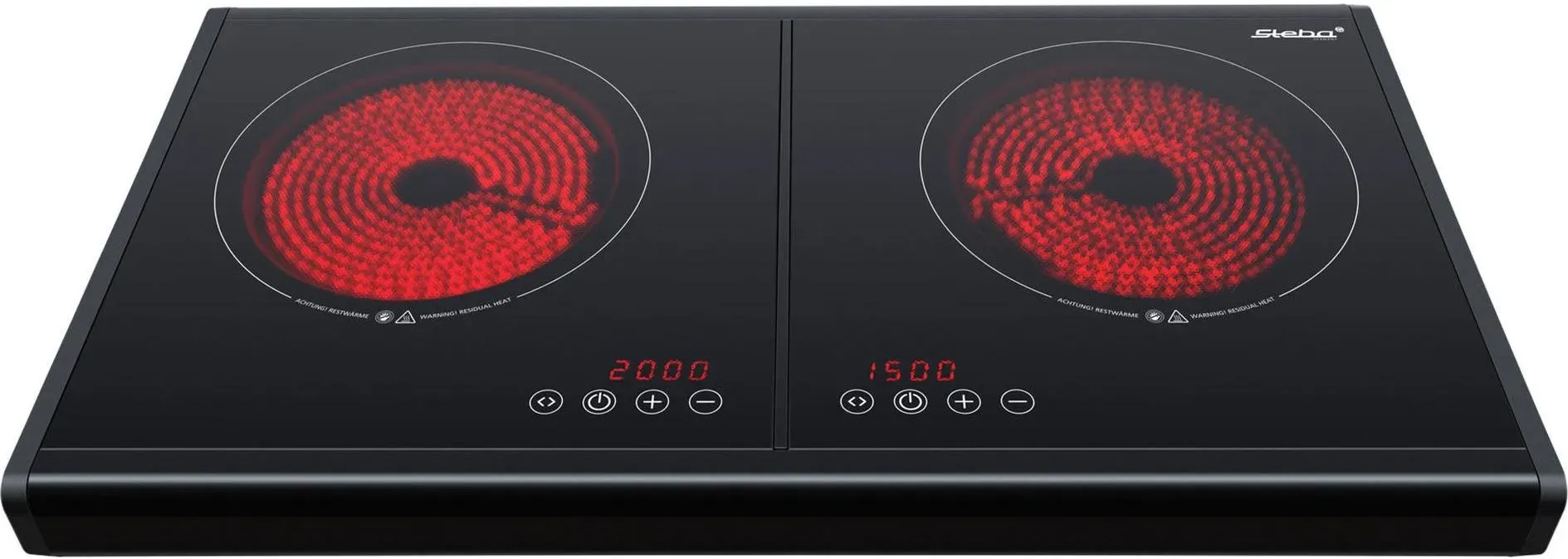 Kategorie: Kochplatten - Proficook - GTIN:4006160012118 - Infrarot-Doppelkochplatte mit hochwertiger Glaskeramikkochfläche, Kratzfeste, glatte Kochfläche (sehr leicht zu reinigen), Geeignet für alle Topfarten, Stufenlose Temperaturregelung über Aluminiumdrehregler, LED-Kontrollleuchte, Robuste Aluminium-Griffe (wärmeisoliert), überhitzungsschutz, Hohe Sta... - 139,00 Euro bei Bleywaren - gefunden von billiger.de Die Steba HK 250 ist eine moderne Doppelkochplatte mit Touch Control und hoher Leistung, die sich gut in jede Küche einfügt. ![]() ![]() Steba HK 250 Doppelkochplatte Ceran 3500W 18,5cm Touch Control ab 01/25, Kochplatte, Schwarz