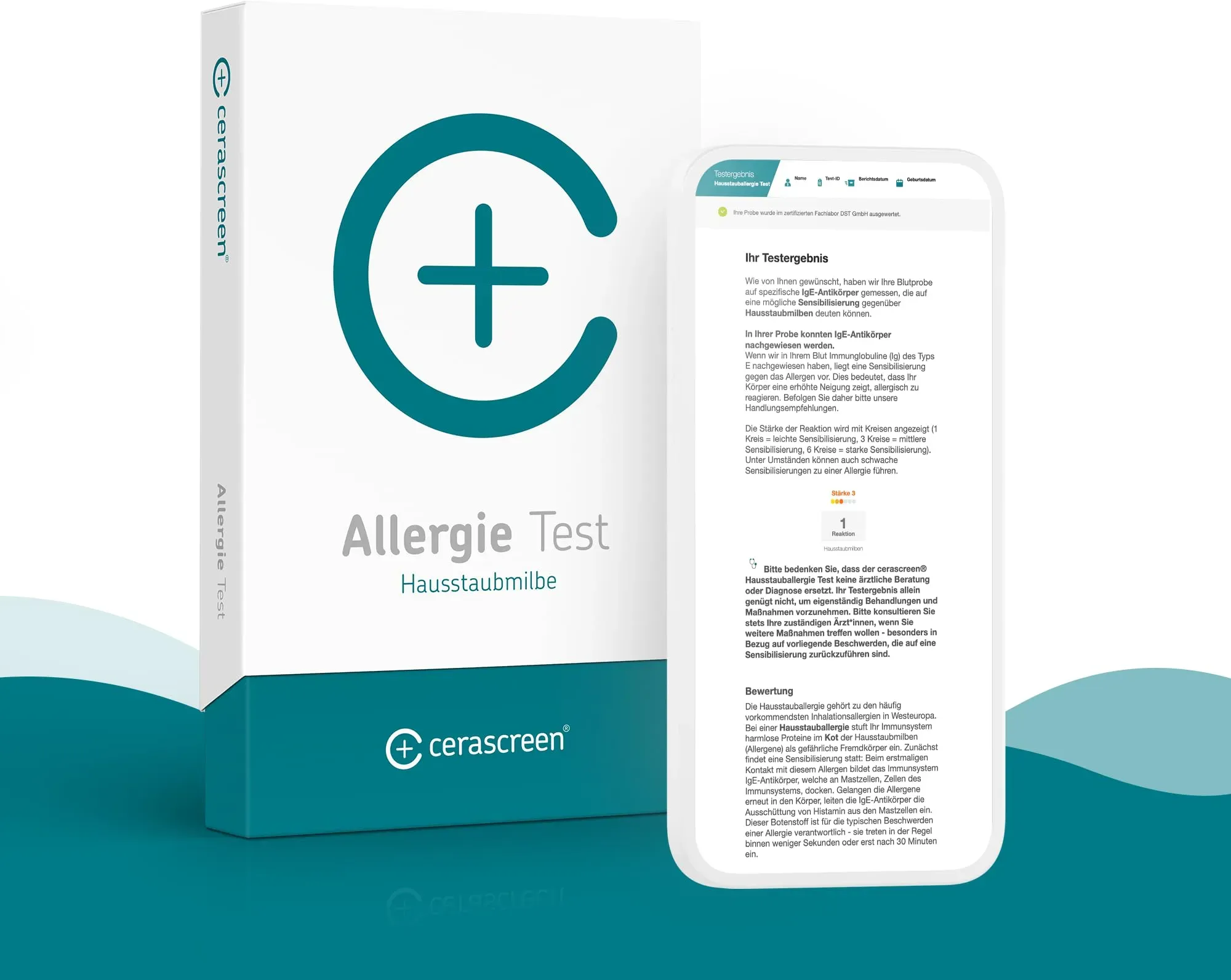 Gesundheitskategorien Selbsttest sonstige Tests Allergietest Sonstige - EAN:4251620707459 - Anwendungsgebiet von Cerascreen Großer Allergie-Test-Kit Blut IgE-Bluttest - Ihr persönlicher Check auf 61 häufige AllergeneAllergien haben viele Gesichter - von laufender Nase, Husten und juckenden Augen bis hin zu Hautreaktionen oder Verdauungsproblemen. Die Ursache ist im Alltag oft schwer zu erkennen: Stecken Pollen dahinter, Tierhaare, Hausstaubmilben oder doch bestimmte Lebensmittel?Genau hier setzt der cerascreen Große Allergie Test an. Mit dem praktischen Testkit zur Anwendung zu Hause können Sie die Konzentration von IgE-Antikörpern gegen 61 weit verbreitete Allergene analysieren lassen. Getestet wird auf eine Vielzahl potenzieller Auslöser, darunter Pollen von Bäumen und Gräsern, Tierhaare (z.€¯B. von Hunden, Katzen und Pferden), diverse Lebensmittel, Hausstaubmilben und Latex.Ein erhöhter IgE-Wert in Bezug auf bestimmte Allergene kann ein deutlicher Hinweis auf eine allergische Reaktion sein. Für eine abschließende medizinische Abklärung empfehlen wir Ihnen, sich an allergologisch geschulte Fachärzt*innen zu wenden. Ihre Vorteile auf einen Blick:Einfache und diskrete Blutentnahme von zuhauseAnalyse durch ein medizinisches FachlaborWissenschaftlich fundierte IgE-MessungErkenntnisse zu potenziellen KreuzallergienErgebnis in wenigen Wochen online verfügbarWirkstoffe / Inhaltsstoffe / ZutatenTestkit bestehend aus: Trockenblutkarten Lanzetten Pflaster, Tupfer, ... ![]() ![]() Großer Allergie Test von CERASCREEN - Umfangreiche Laboruntersuchung von 61 Allergenen wie Lebensmittel, Pollen und Katzen | Testkit für zu Hause | IgE-Antikörper | Detaillierter Ergebnisbericht