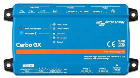 10 Händlerangebote bei billiger.de - Kategorie: Photovoltaik-Zubehör - Victron Energy - Der Cerbo GX ist ein flexibles Kommunikationszentrum, das die Fernüberwachung auf die nächste Stufe hebt. Mit allen Hardware-Anschlussmöglichkeiten, die Sie brauchen. Mit dem Cerbo GX können Sie Ihr System von überall und jederzeit überwachen und steuern. Er ist als vielseitiges Herzstück konzipiert, das sich nahtlos mit Ihren anderen angeschlossenen Produkten von Victron und unterstützten Geräten von Drittanbietern verbinden lässt. Beherrschen Sie entfernte Systeme mit Echtzeitüberwachung, historischer Analyse, Fernzugriff und Steuerung mit dem Victron Remote Monitoring (VRM) Portal und der VictronConnect App. Oder schließen Sie einfach ein GX Touch Display zur direkten Steuerung an. Mit einer Vielzahl von Möglichkeiten legt der Cerbo GX die Macht in Ihre Hände. - GTIN:8719076062257 ![]() ![]() Victron Energy Victron Cerbo GX MK2 Systemüberwachung - 0% MwST. (Angebot gemäß 12 USt Gesetz.)